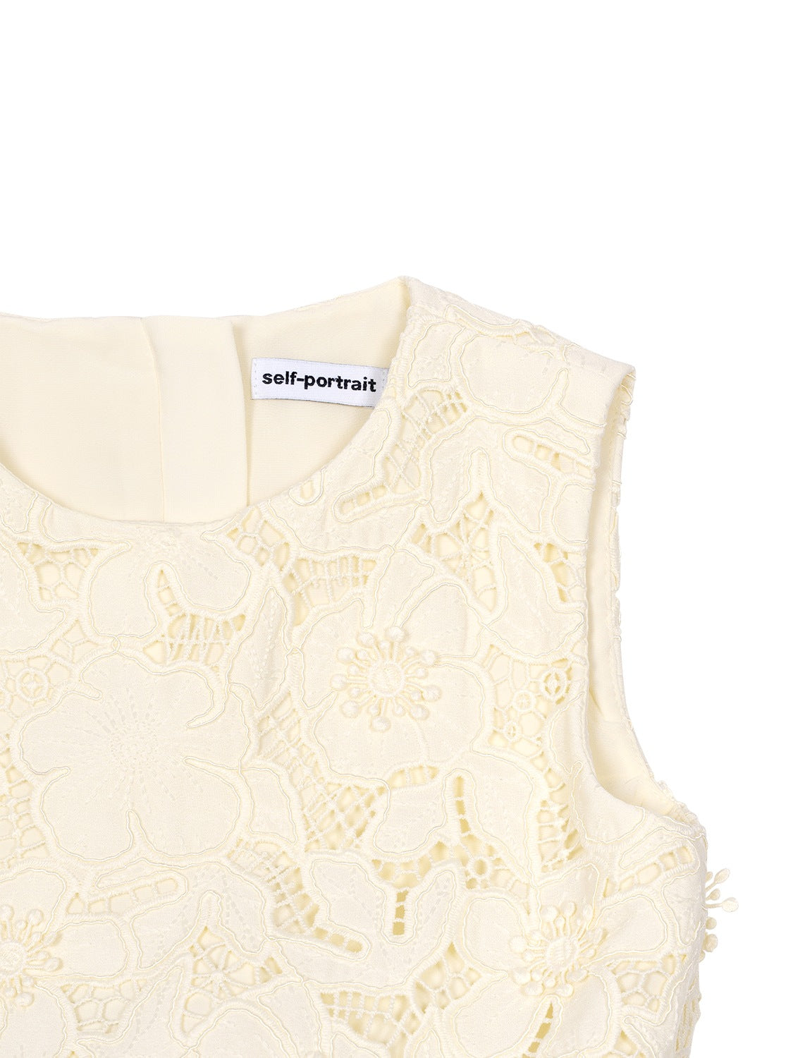 Dieses festliche Kleid in zartem Gelb von Self-Portrait präsentiert sich im atemberaubenden Spitzendesign mit breiten Trägern und einem weit fallenden Rock.