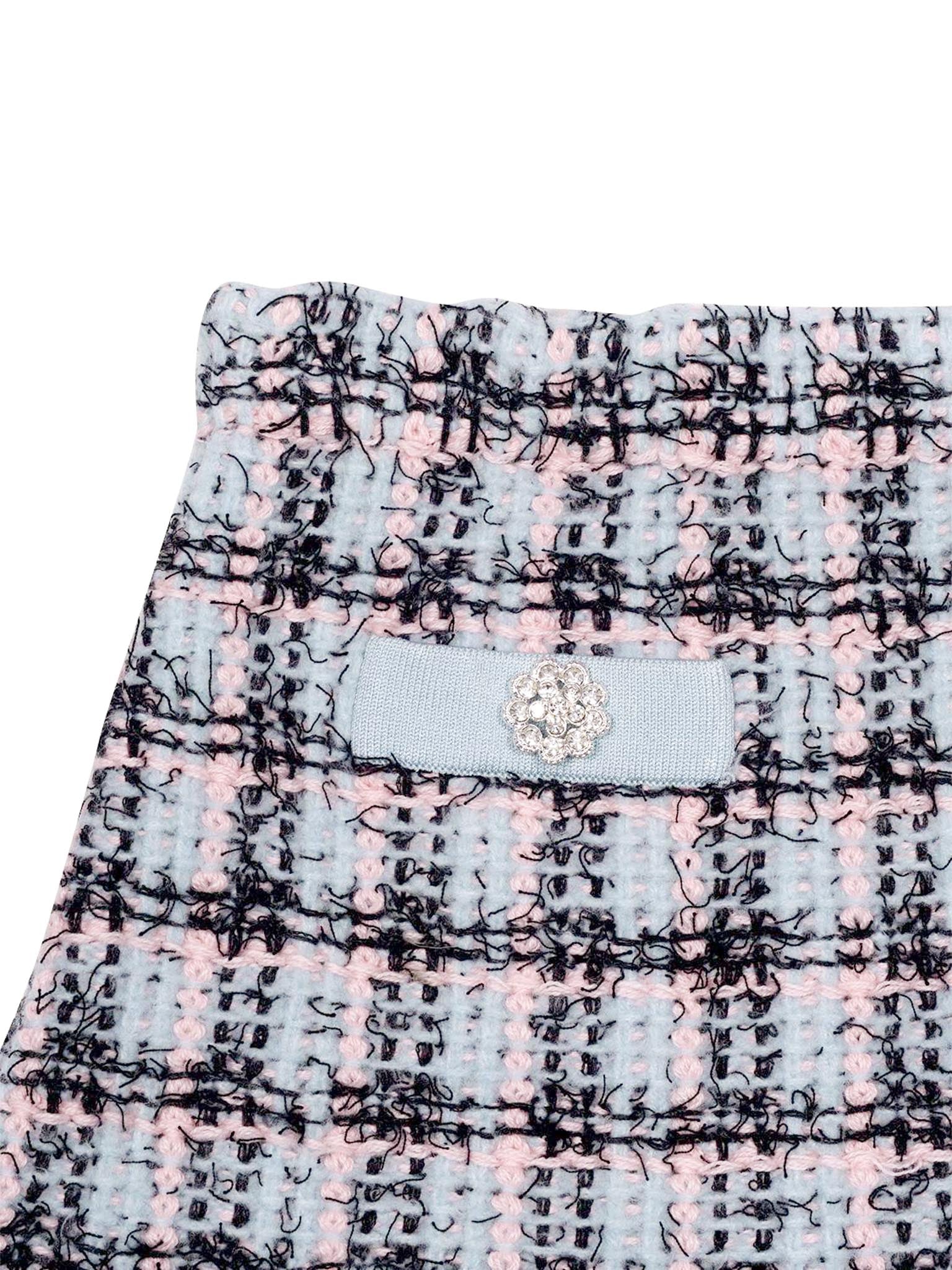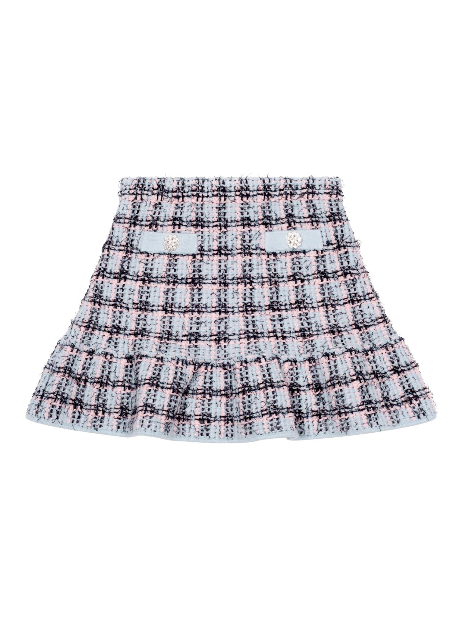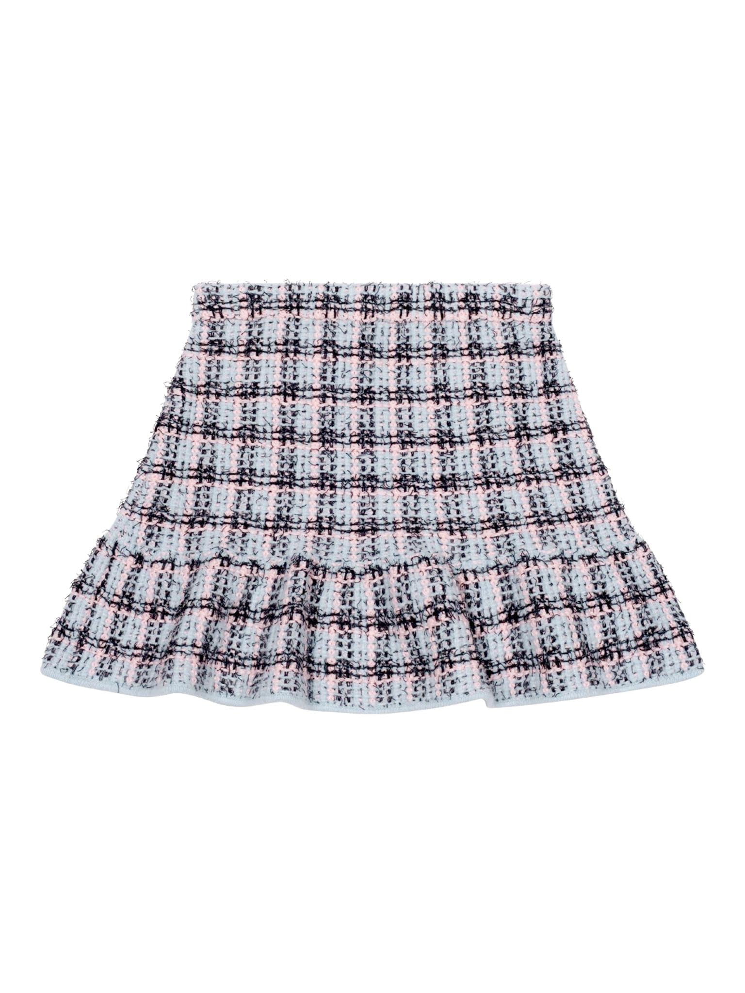 Bouclé-Strickrock mit strukturierten Streifen - Hellblau/Rosa