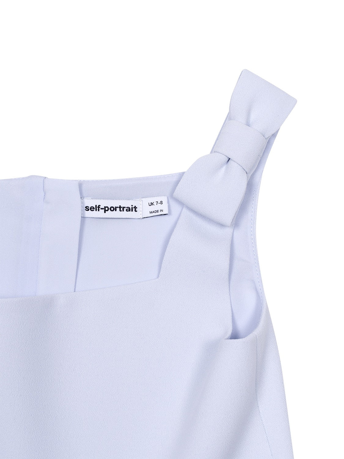 Dieses hellblaue Crêpekleid von Self-Portrait ist perfekt für Partys und festliche Anlässe aller Art. Das Modell besticht durch seine elegante A-Linien-Silhouette und die kunstvollen Blütenverzierungen am Saum. Schleifendetails an den Trägern unterstreichen den verspielten Charakter. Vollendet wird das Design von einem eckigen Ausschnitt sowie einem verdeckten Reißverschluss auf der Rückseite.