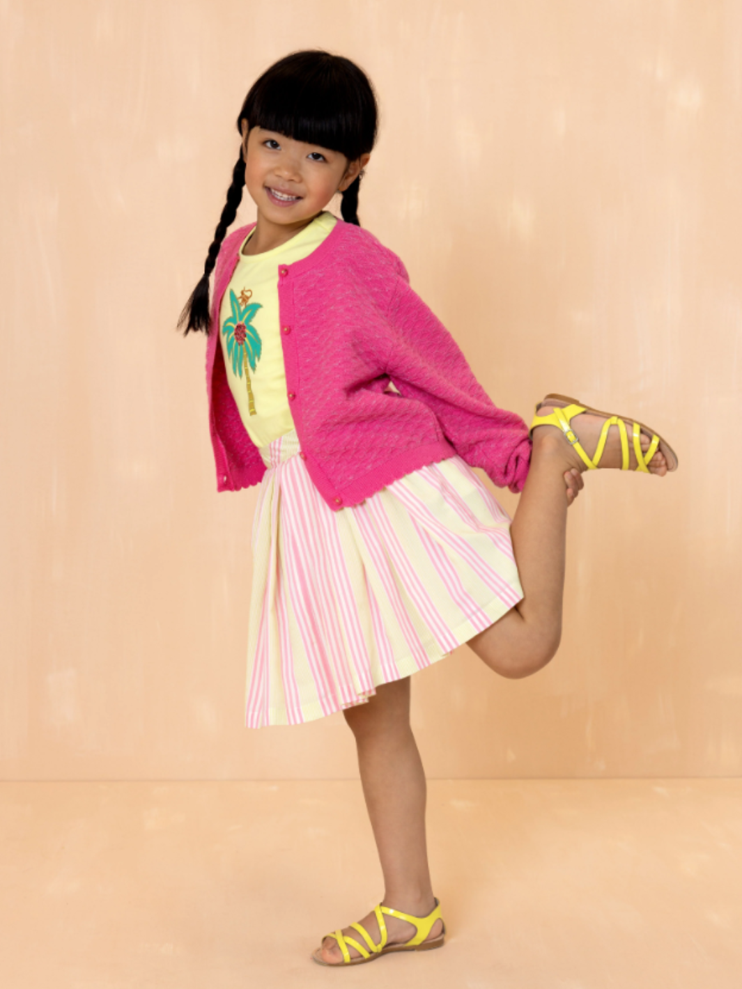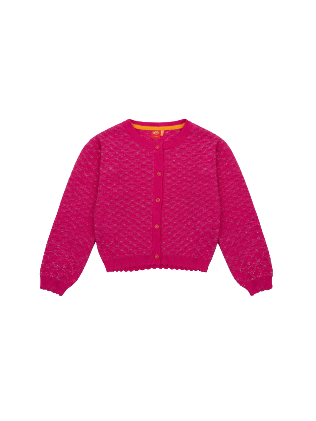 Die Vitamine Strickjacke mit einem Hauch von Glitzer kratzt nicht. Rundhalsausschnitt und Wellenkante am Saum machen das Design komplett. Diese Strickjacke lässt sich easy kombinieren und darf in keinem Kleiderschrank fehlen.