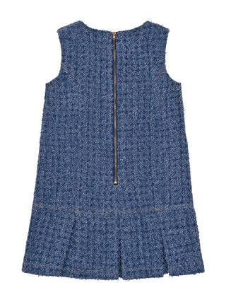 Tweedkleid aus strukturierter Baumwolle - Denimblau