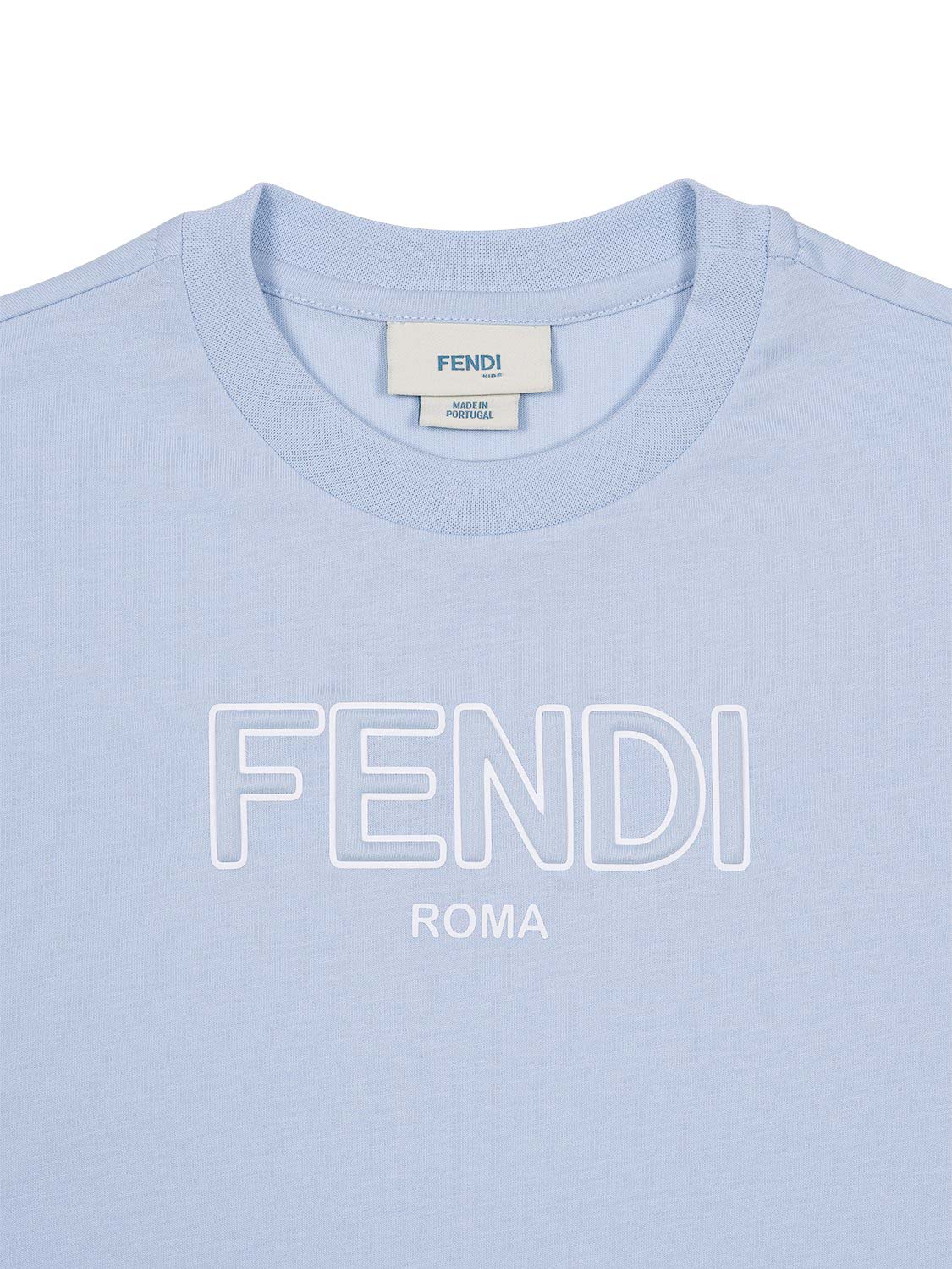 Dieses hellblaue T-Shirt aus der aktuellen Fendi-Kids-Kollektion ist die perfekte Ergänzung für die Garderobe ihres Kindes. Das Modell bietet dank der Fertigung aus reiner, besonders weicher Baumwolle höchsten Tragekomfort, während auf der Brust das ikonische Logo als Emboss-Variante dem Ton-in-Ton-Design ein labeltypisches Finish verleiht. Neben einem gerippten Rundhalsausschnitt verfügt das Shirt über kurze Ärmel sowie eine normale Passform.