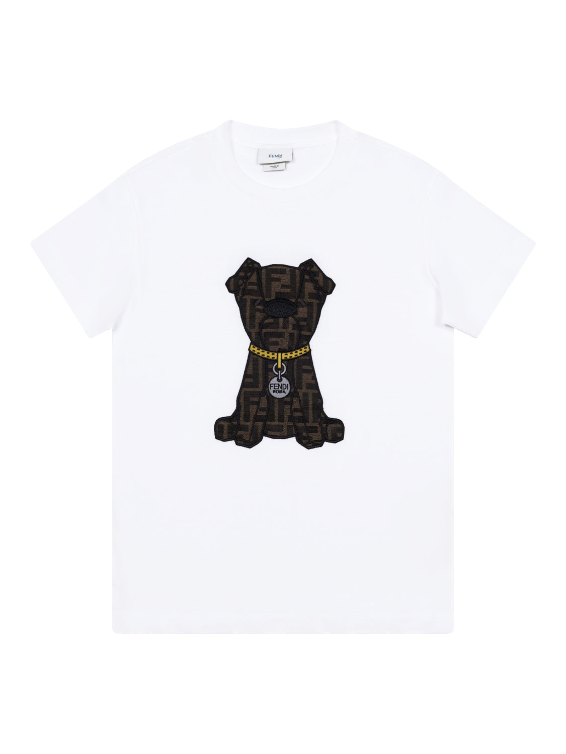 Dieses T-Shirt in Weiß aus der aktuellen Fendi-Kids-Kollektion ist die perfekte Ergänzung für die Kindergarderobe. Auf der Vorderseite wird ein raffiniertes Hunde-Motiv mit dem ikonischen FF-Jaquard und gesticktes Details zum besonderen Blickfang, während die Fertigung aus reiner, besonders weicher Baumwolle höchsten Tragekomfort verspricht. Neben einem gerippten Rundhalsausschnitt verfügt das Shirt über kurze Ärmel sowie eine normale Passform.