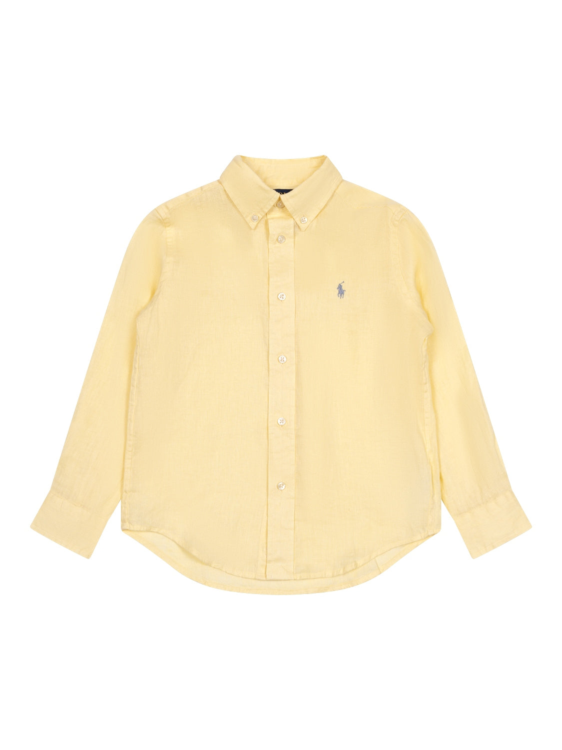 Dieses elegante Hemd in Gelb von Ralph Lauren überzeugt mit einem klassischen Design sowie einer Herstellung aus leichtem Leinen, für ein unvergleichlich angenehmes Tragegefühl. Neben einem Button-Down-Spitzenkragen verfügt das Modell über einen Knopfverschluss auf der Vorderseite, einen lockeren Schnitt mit langen Ärmeln und geknöpften Manschetten, eine Rückenpasse mit Kellerfalten sowie einen leicht abgerundeten Saum. Auf der Brust setzt die charakteristische Polo-Pony-Stickerei in kontrastierendem Grau labeltypische Akzente.
