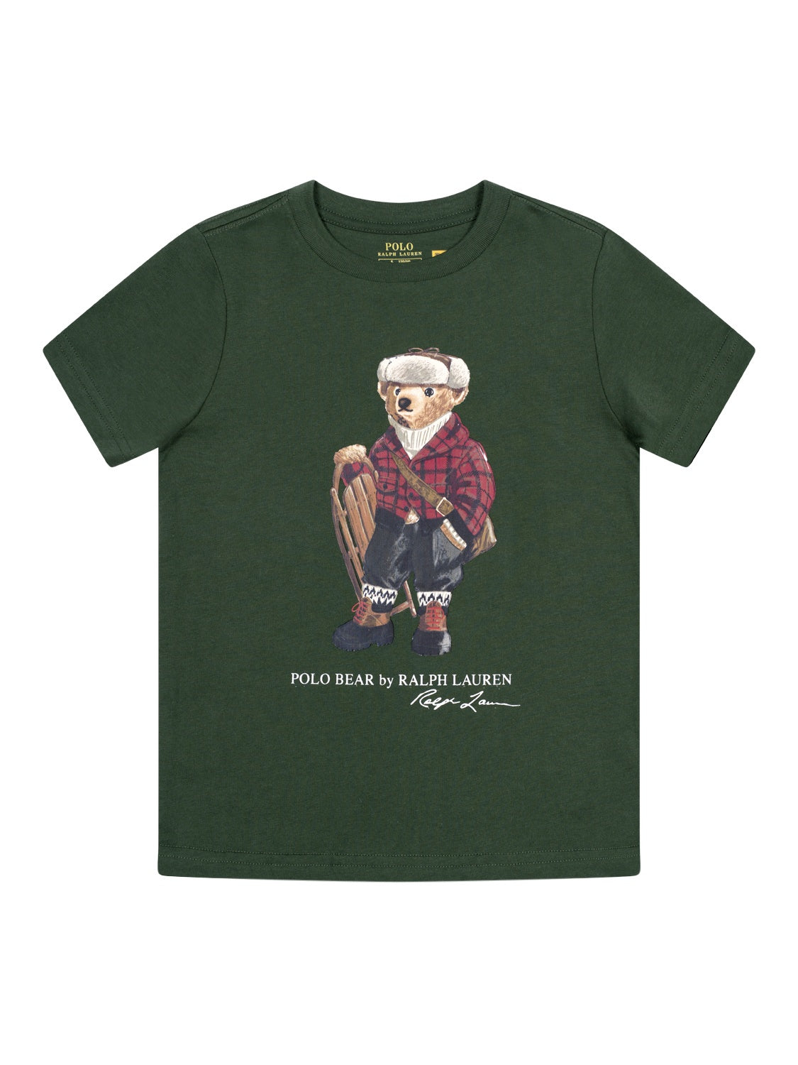 Dieses T-Shirt in Grün von Ralph Lauren wird aus weicher Baumwolle gefertigt und verspricht höchsten Tragekomfort. Auf der Vorderseite präsentiert das Modell einen kunstvollen Print des kultigen Polo-Bären im typischen Ralph-Lauren-Design in winterlicher Stimmung. Zudem ist das T-Shirt mit einem gerippten Rundhalsausschnitt, kurzen Ärmeln sowie einer normalen Passform versehen.