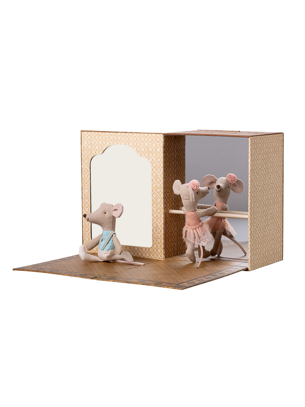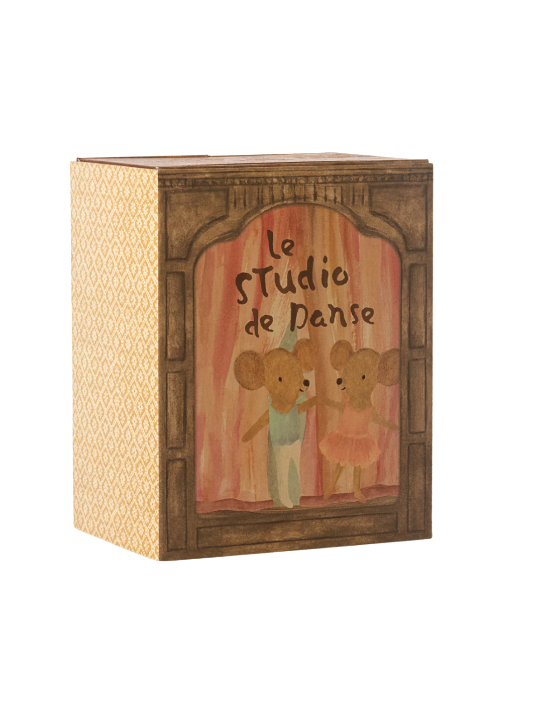 Ein Traum für alle Tanzfans. Öffne die Türen dieser magischen Box und erkunde eine Welt voller Tanz und Sternenstaub. Das Set enthält eine Pappschachtel, die sowohl ein Tanzstudio als auch ein gemütliches Mäusehaus ist, sowie zwei Mäuse, die für stundenlangen Tanz bereit sind.