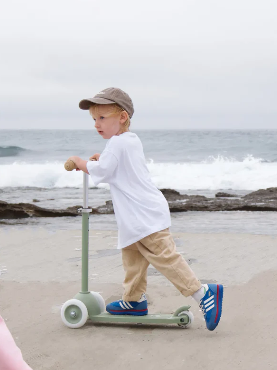 Dieses umweltbewusste Material wird von zertifizierten Abfallentsorgungspartnern bezogen und aus weggeworfenen Gegenständen wie Flaschen, Tüten, Bechern und Fischernetzen wiederverwertet. Dieser Roller wurde entwickelt, um mit Ihrem Kind mitzuwachsen. Er fördert nicht nur das Gleichgewicht und die Koordination, sondern verkörpert auch unser Engagement für die Reduzierung der Umweltbelastung durch durchdachtes Design.