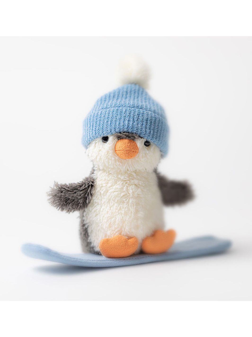 Der Peanut Penguin Snowboarding von Jellcat ist ein absoluter Winterfan und bereit für Kuschelabenteuer im Schnee oder in deinen Armen. Der süße Pinguin trägt eine gestrickte Pudelmütze und bringt sein geliebtes Snowboard gleich mit. Mit seinem sanften Ausdruck und der knuddeligen Sitzhöhe von 11 cm ist dieser bezaubernde Pinguin bereit für alle Abenteuer im Schnee. Peanut verbreitet einen Hauch von Wintermagie und ist damit der perfekte Begleiter und Kuschelpartner!