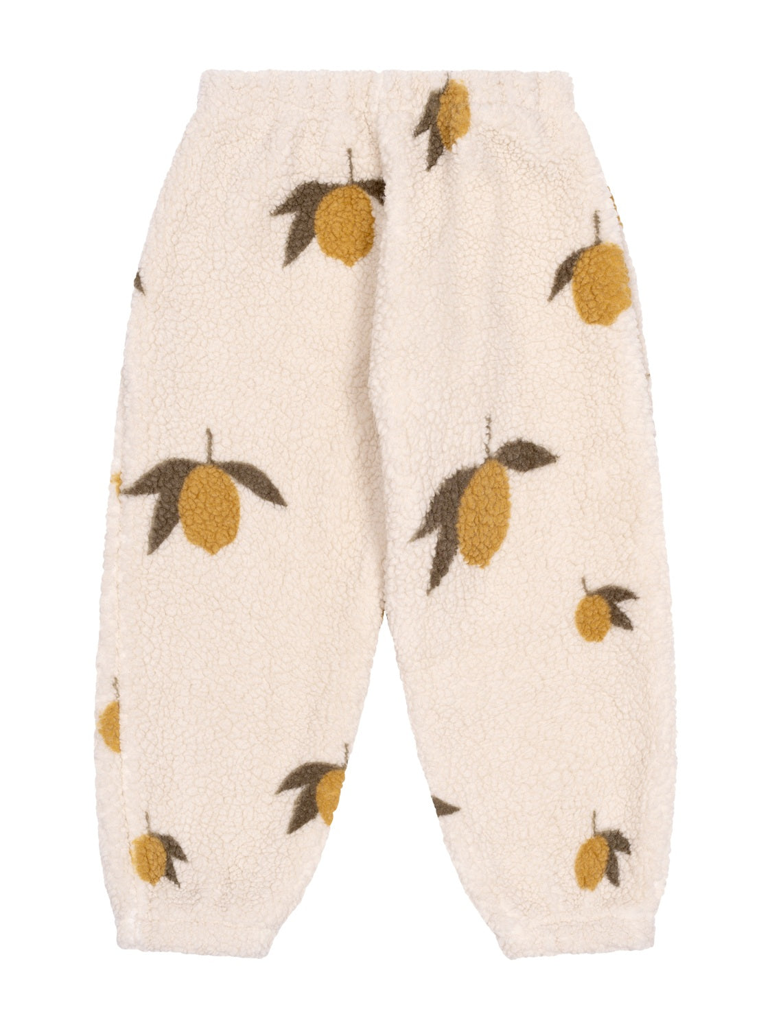 Die extra warme Fleece-Hose Jody von Konges Sløjd besticht mit einem süßen Allover-Zitronen-Motiv und ist ein Must-have für die kühle Saison. Dank des komfortablen Gummibundes bietet das Modell ein angenehmes Tragegefühl. Hergestellt wird der kuschelweiche Teddyfleece aus recyceltem Polyester.