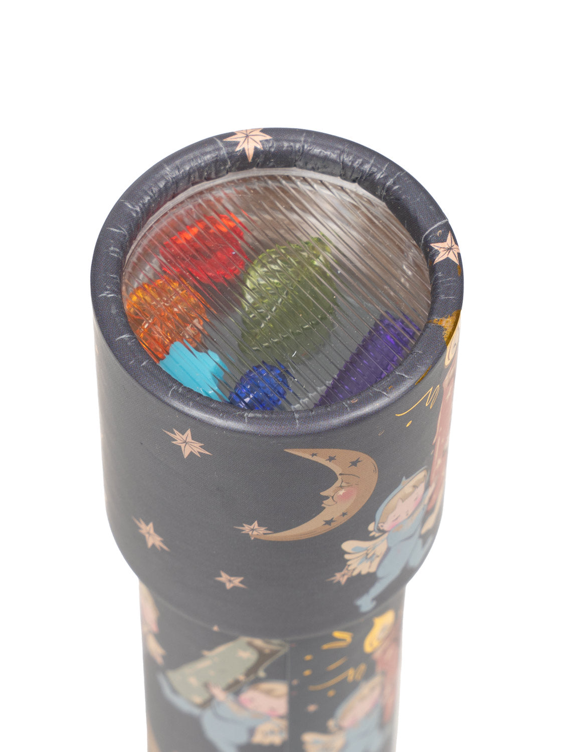 Dieses magische Kaleidoskop von Konges Sløjd ist eine wundervolle Geschenkidee und bringt Kinderaugen zum Strahlen. Im Inneren schaffen bunte Perlen bei Drehen des Kaleidoskops immer wieder neue faszinierende Muster. Das Kind kann hineinschauen und durch die Reflexion der Spiegel und bunten Steinchen verschiedene Farben und Muster erkennen und in eine Welt voller Magie und Fantasie abtauchen.