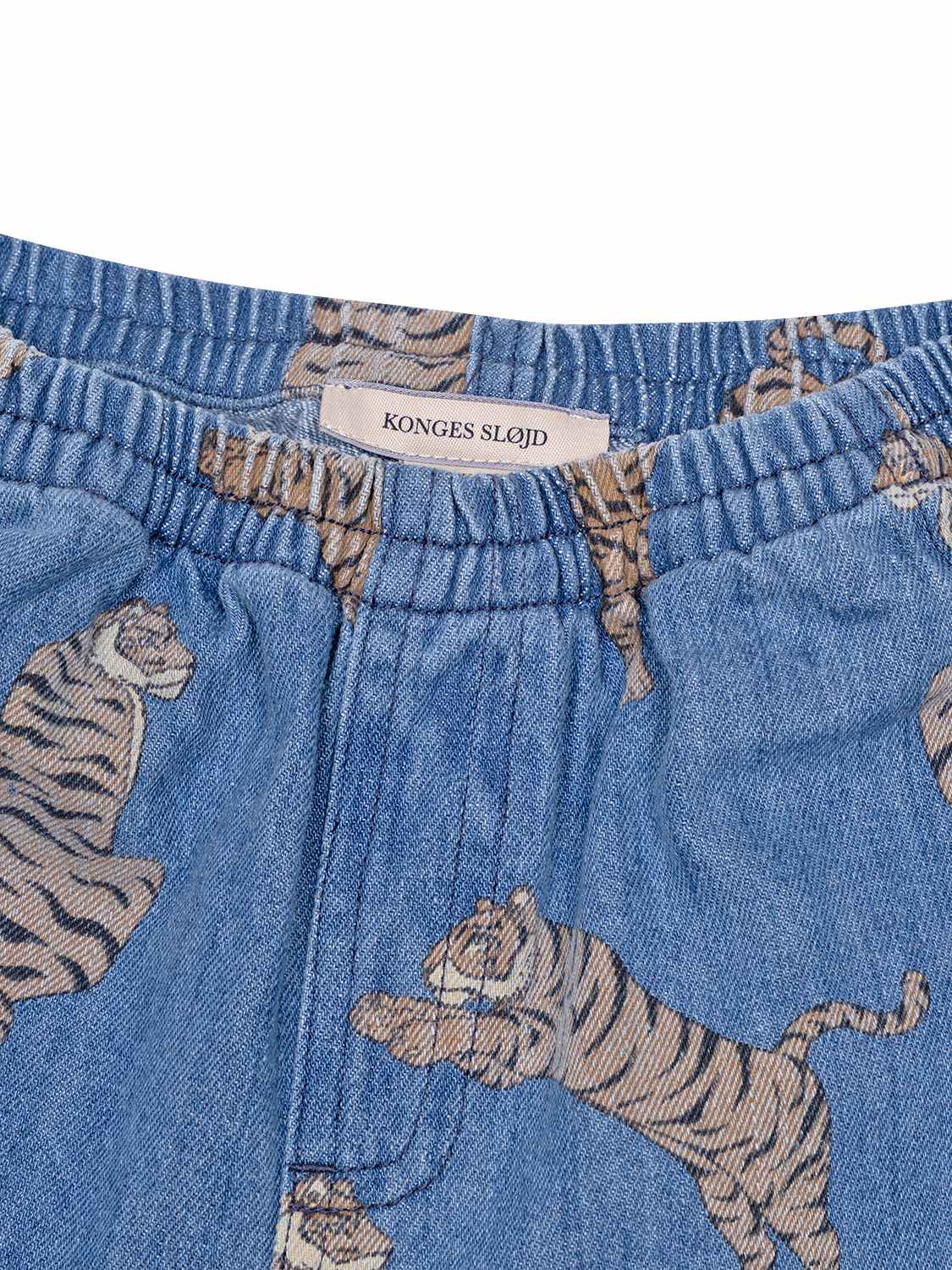 Die weiche Jeanshose Magot in Blau von Konges Sløjd ist mit seinem Allover-Tiger-Motiv ein cooler Hingucker und passt dank des lockeren Schnitts perfekt zu allen Alltagsabenteuern.