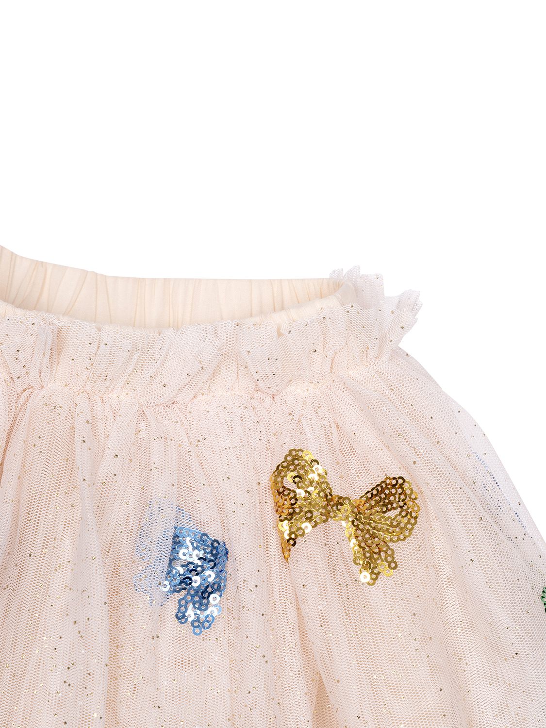 Der voluminöser Tüllrock Yvonne in Beige von Konges Sløjd ist mit seinen weit fallenden Tülllagen und gestickten, bunten Paillettenschleifen ein echtes Lieblingsstück für Mädchen. Ein elastischer Bund und ein Futter aus reiner Baumwolle bieten höchsten Komfort. Egal ob zu festlichen oder legeren Anlässen, mit diesem bezaubernden Rock lassen sich vielseitige Looks kreieren.