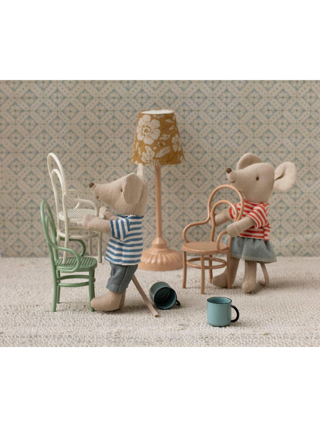Die beiden Maileg-Mäuse Loui Max & seine Schwester Stella sind in der Größe Kleine Schwerster/Bruder gefertigt und passen perfekt in das Maileg-Puppenhaus. Geliefert werden die Mäuse-Geschwister in einem liebevoll gestalteten Mini-Papphäuschen.