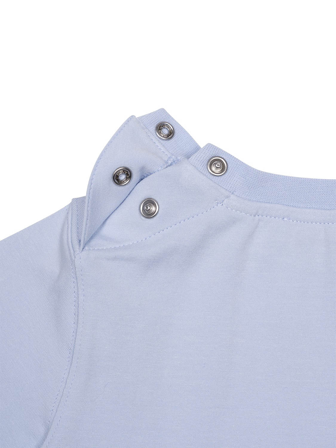 Dank der extra glatten Baumwolle verspricht das Modell ein angenehm weiches Tragegefühl, während praktische Druckknöpfe an der Schulter das An- und Ausziehen erleichtern.