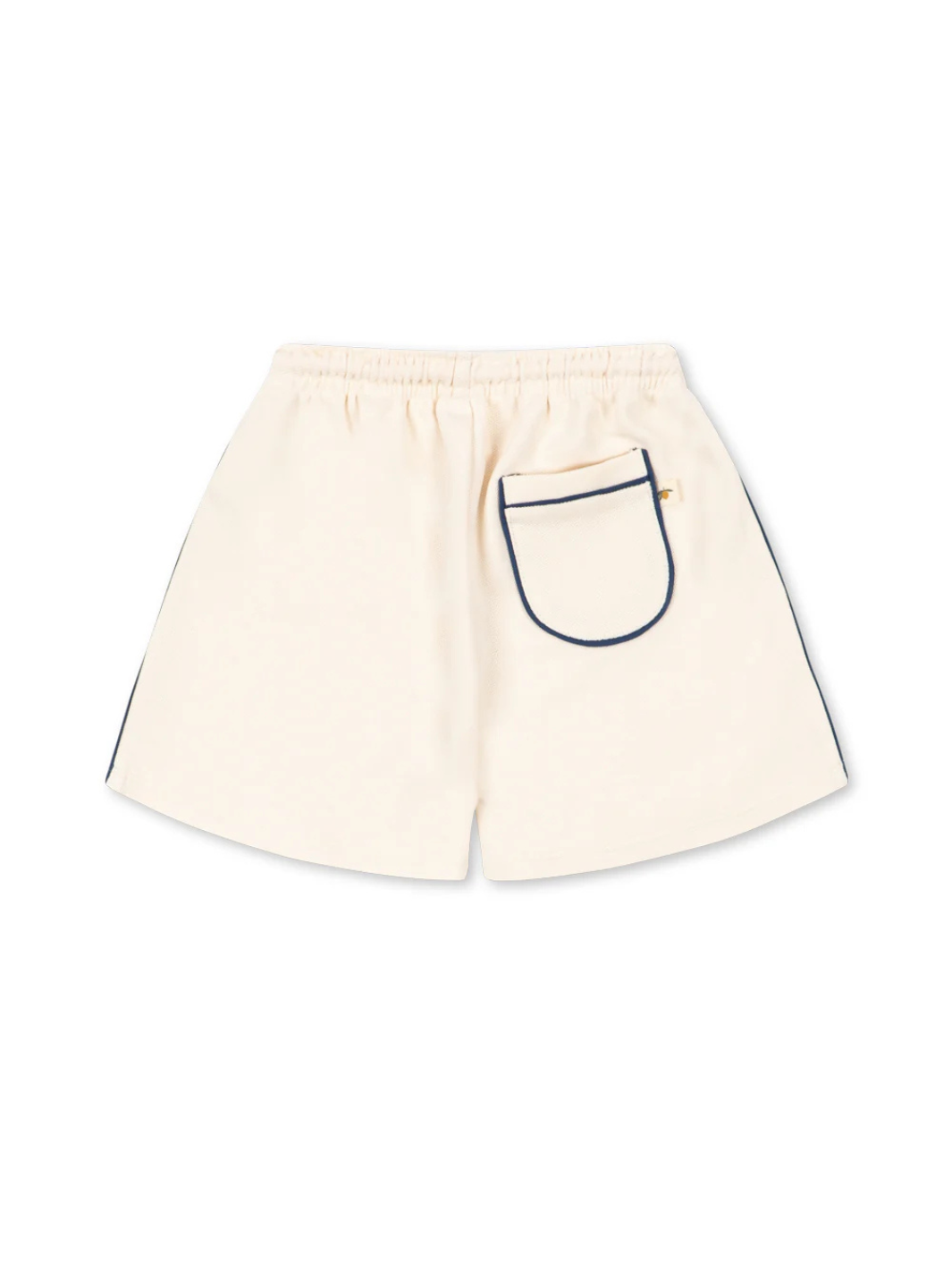 Die Florian Shorts in Offwhite von Konges Sløjd bieten dank der Fertigung aus extra weicher Bio-Baumwolle ein besonders angenehmes Tragegefühl. Der elastische Bund mit Kordelzugverschluss bietet zusätzlichen Komfort, während eine aufgesetzte Gesäßtasche mit einem kleinen Zitronen-Etikett den Look gekonnt abrundet.