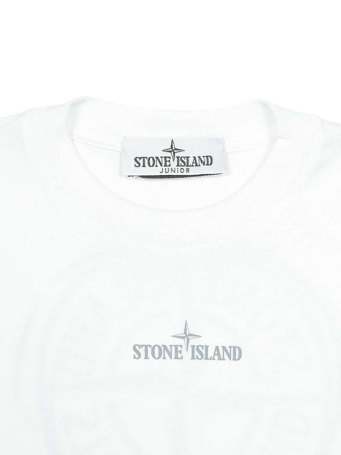 Dieses T-Shirt in Weiß von Stone Island Junior vereint raffinierten Stil mit exzellentem Komfort, um höchsten Ansprüchen gerecht zu werden. Das klassische Design im Regular Fit mit kurzen Ärmeln und rundem Ausschnitt wurde speziell für die empfindliche Kinderhaut entworfen, während die glatte Baumwolle ein angenehm weiches Tragegefühl verspricht. Auf der Brust erscheint der Logo-Schriftzug und wird auf der Rückseite von einem großen Print des ikonischen Kompass-Motivs gekonnt ergänzt.