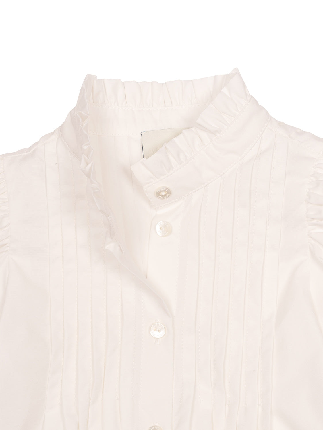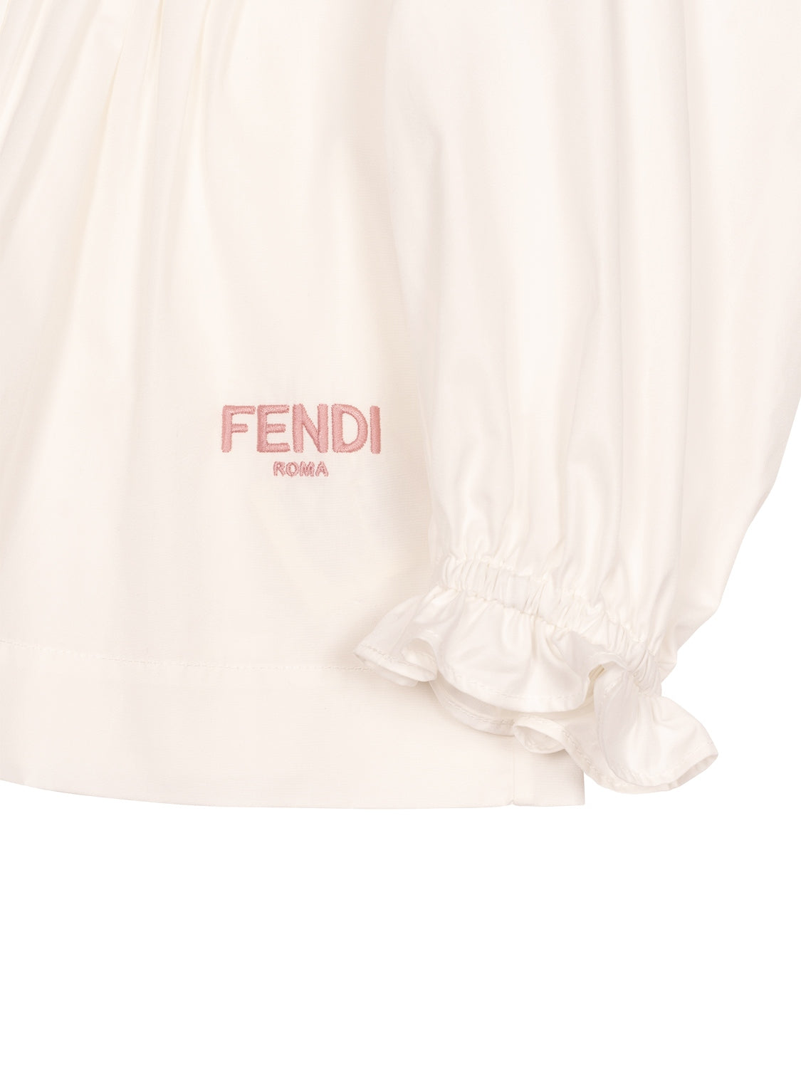 Diese edle Bluse in Weiß von Fendi besticht mit feinen Biesen-Details auf Vorder- und Rückseite sowie einer Fertigung aus reiner Baumwolle, für ein traumhaftes Tragegefühl. Eine Bluse, die perfekt zu besonderen Anlässen passt und jedem Outfit das gewisse Etwas verleiht. Neben einem eleganten Rüschen-Stehkragen verfügt das Modell über lange Ärmel mit elastischen Rüschen-Bündchen, einen Knopfverschluss auf der Vorderseite sowie eine leicht ausgestellte Form. An der Seite wird von der ikonischen Logo-Stickerei in Rosa ein labeltypisches Statement gesetzt.