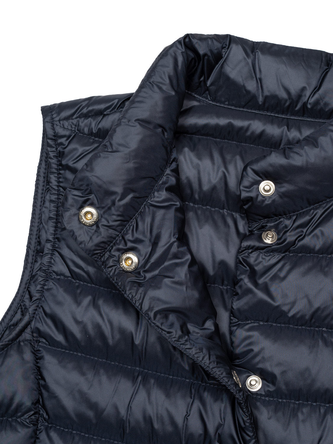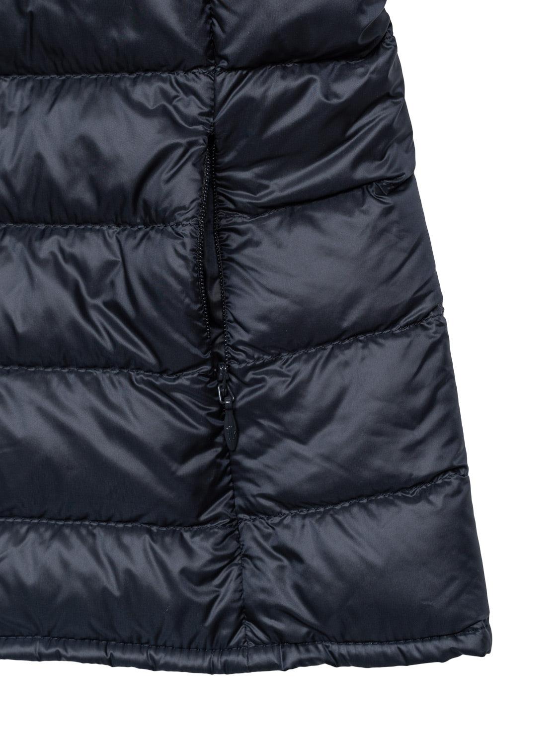 Die Liane Steppweste in Navy für Mädchen von Moncler Enfant wird aus seidig glattem Nylon gefertigt und besitzt den für das Label typischen sportlichen Look. Sie ist leicht mit Daunen gefüttert, um an kühleren Tagen zu wärmen, und eignet sich perfekt für die Übergangszeit. Des Weiteren verfügt die Weste über einen leicht taillierter Schnitt, einen Stehkragen, einen durchgehenden Frontverschluss aus Druckknöpfen, zwei Reißverschluss-Vordertaschen sowie den charakteristischen gefilzten Logoaufnäher auf der Brust.