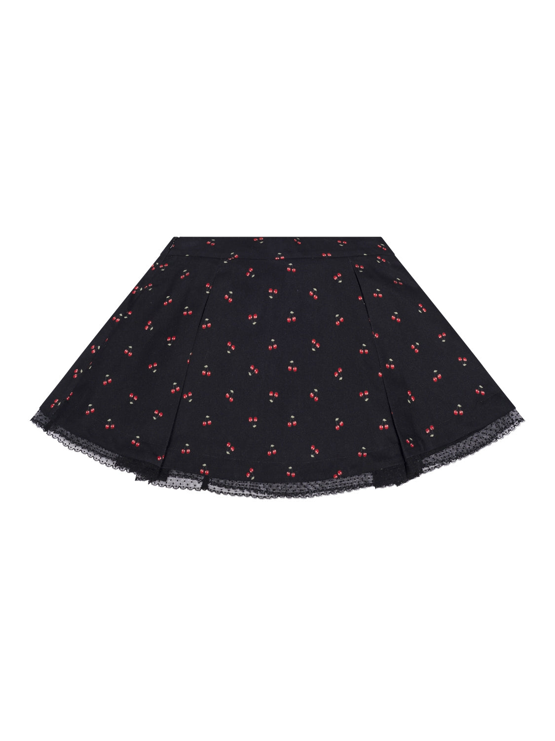 Dieser elegante Rock in Schwarz von Philosophy ist mit seinem prächtigen Alllover-Kirsch-Motiv ein süßer Eyecatcher für die Mädchengarderobe, während ein zarter Spitzenbesatz am Saum den femininen Charakter unterstreicht. Neben charmanten Falten-Details verfügt das Modell über einen versteckten Reißverschluss an der Seite. Gefertigt wird der Rock aus elastischer Baumwolle für ein traumhaftes Tragegefühl.