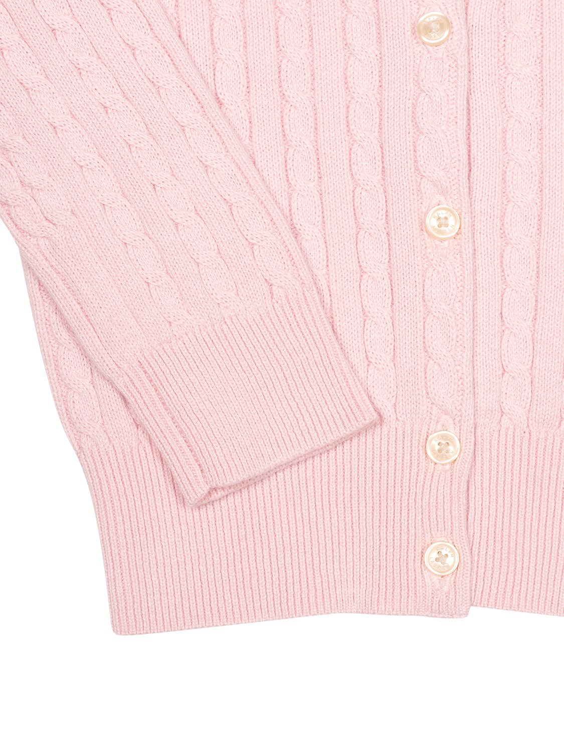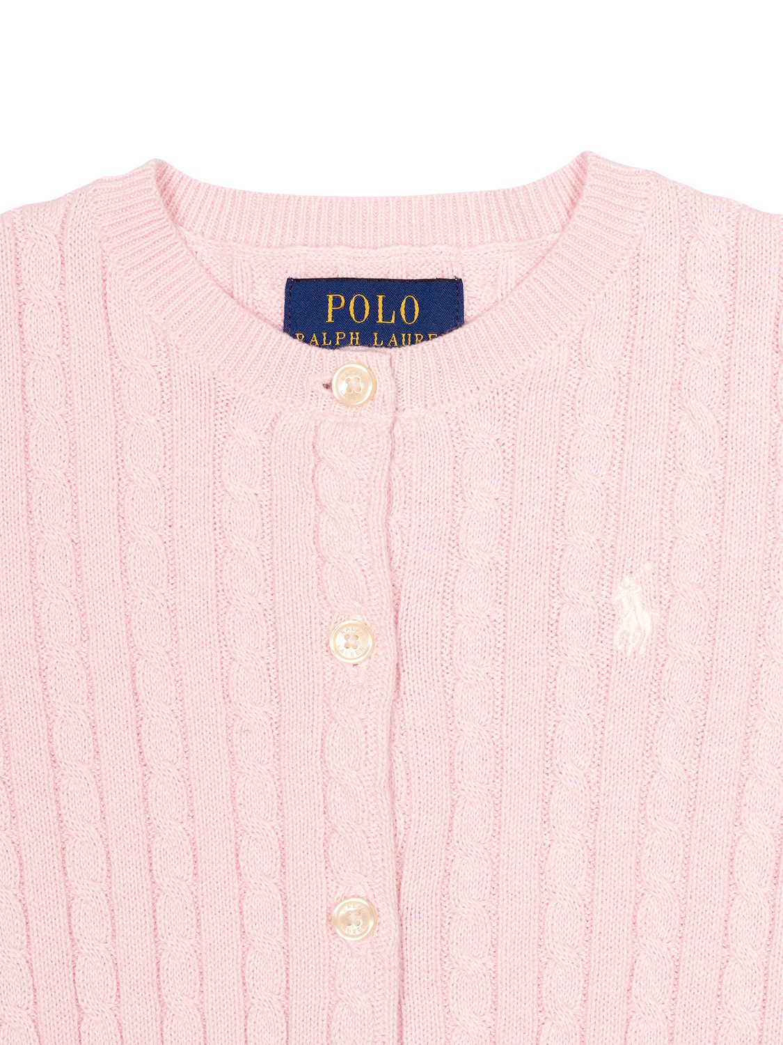 Dieser edle Cardigan in Hellrosa von Ralph Lauren wird aus hochwertiger Baumwolle gefertigt und präsentiert sich im klassischen Zopfstrick-Design.