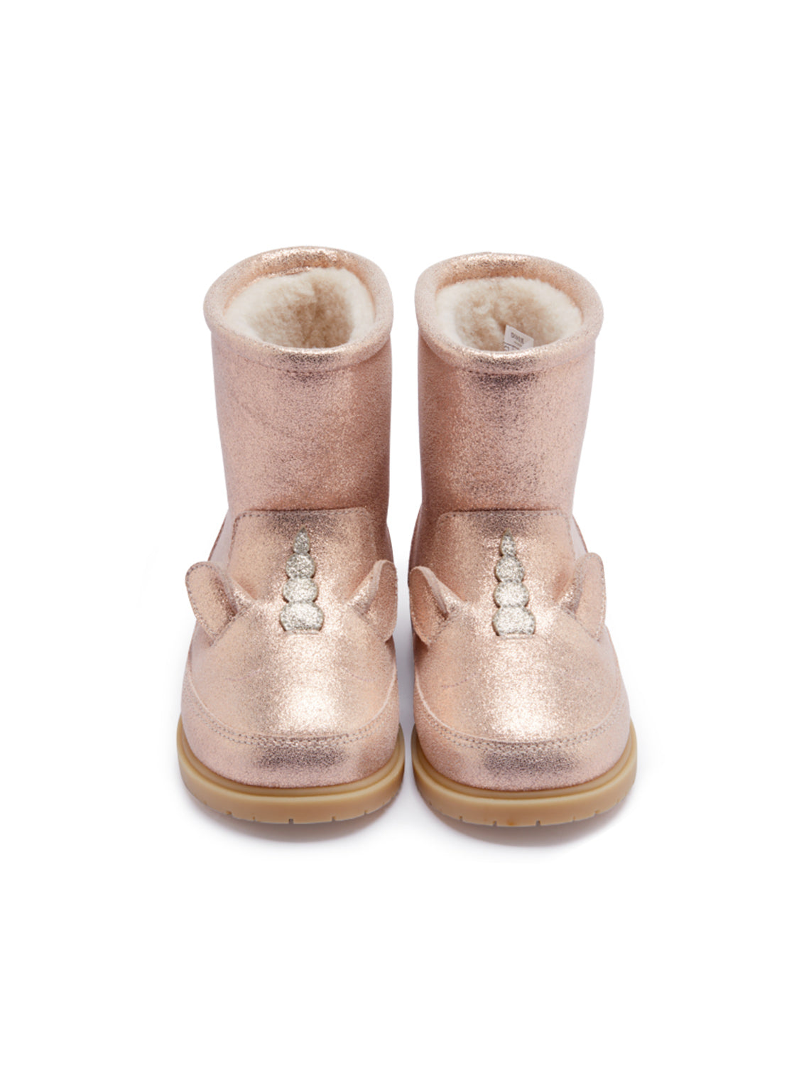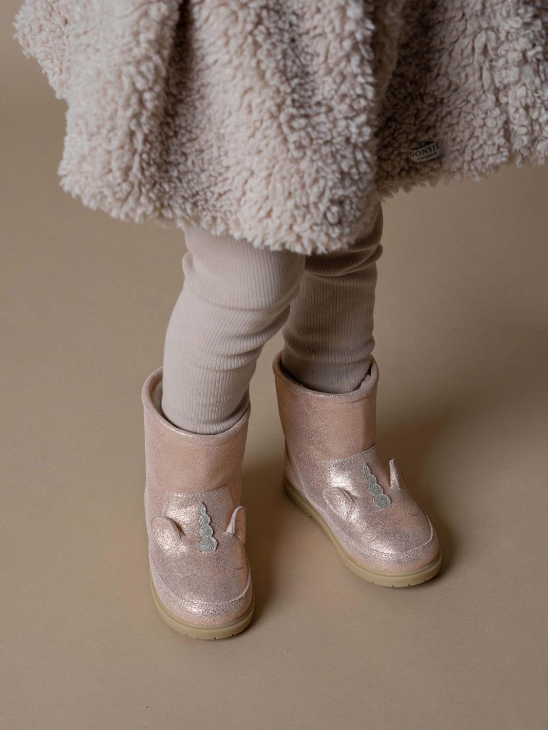 Die Stiefel Xelly mit Einhörnern stehen für pure Gemütlichkeit. Die Stiefel sind zum Reinschlüpfen und das kuschelige Futter aus Schafwolle hält angenehm warm. Die Einhörnern sind bereit für die nächsten Abenteuer.