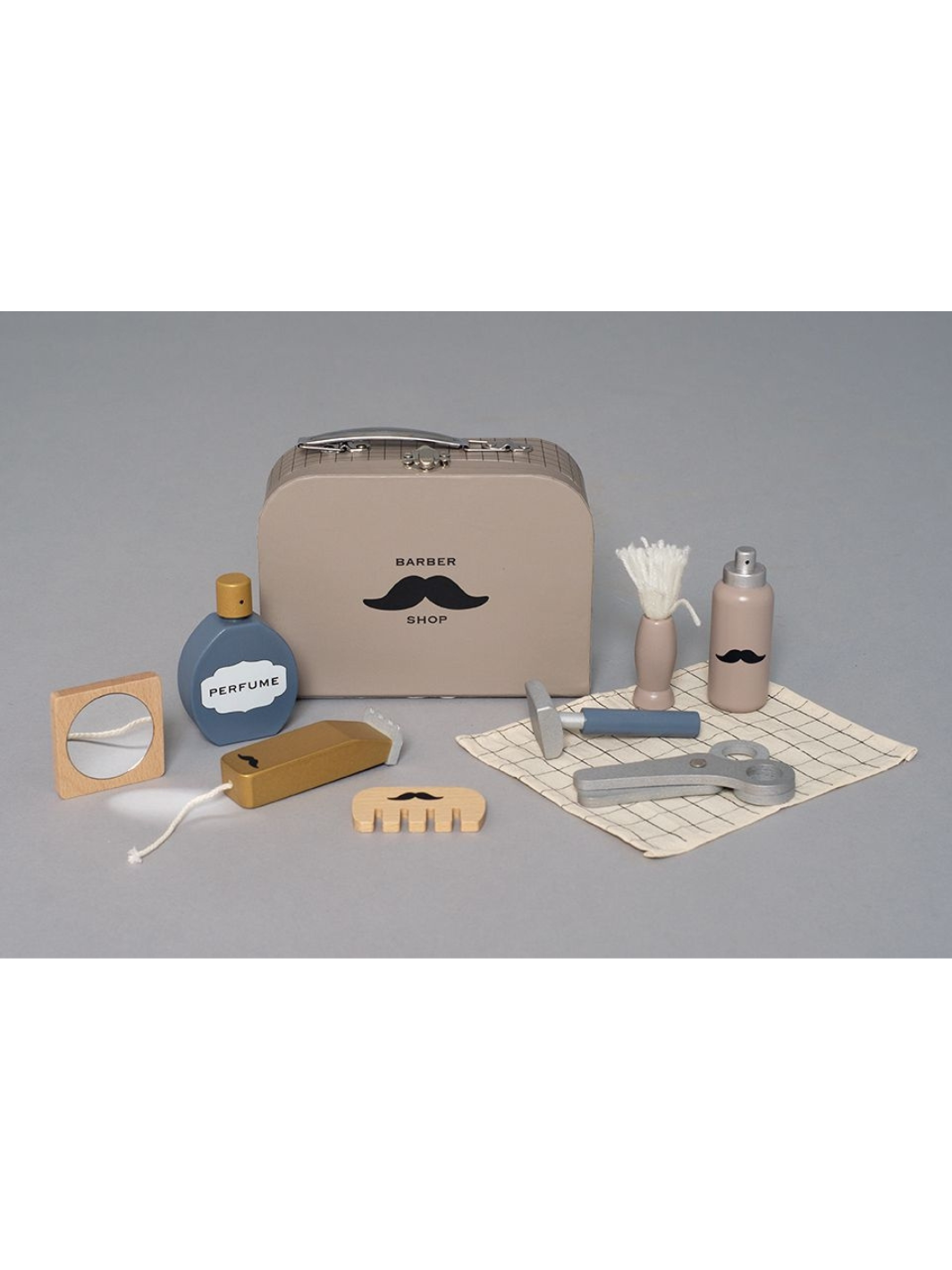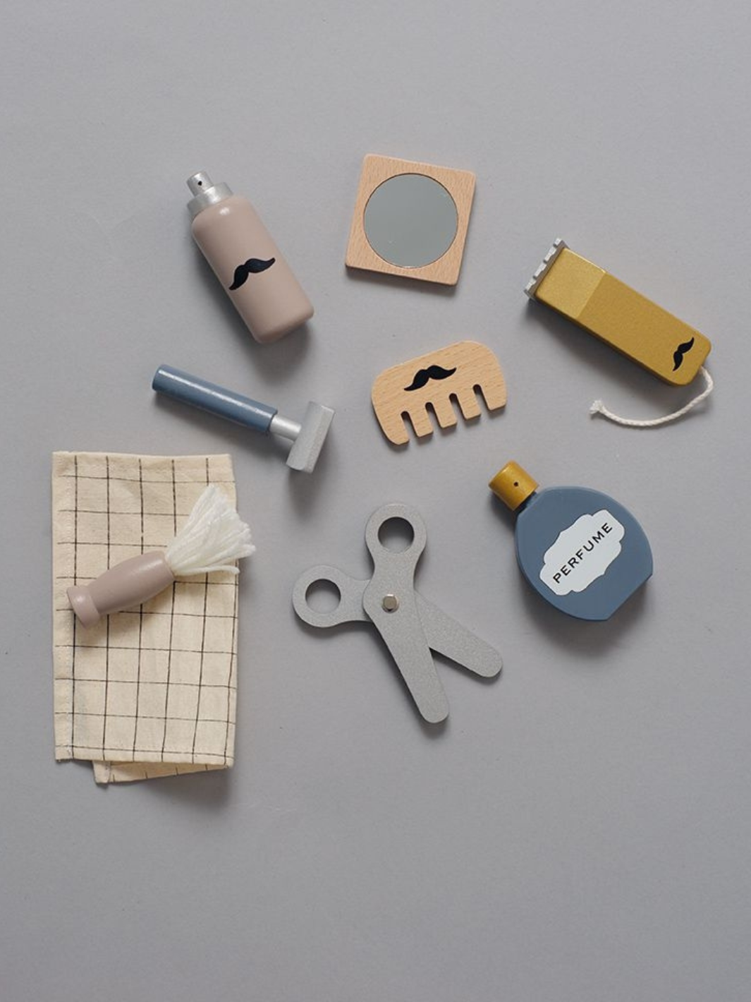 Mit diesem bezaubernden Spielset eröffnet Ihr Kind seinen eigenen Barbiersalon. Jetzt kann es zu Hause mit dem Stylen des perfekten Barts mit Kamm, Schere, Bartschneidemaschine und Rasierer losgehen. Rasierschaum und Rasierpinsel dürfen im Equipment natürlich nicht fehlen. Im Spiegel können sich die Kunden den perfekt gestylten Bart ansehen. Zum Abschluss darf ein bisschen Parfüm natürlich auch nicht fehlen. Alle Utensilien finden in einem dekorativen Koffer ihren Platz und bestehen aus hochwertigem Holz aus nachhaltiger Waldwirtschaft. Bei kreativen Rollenspielen werden die kindliche Fantasie angeregt und soziale Kompetenzen trainiert.