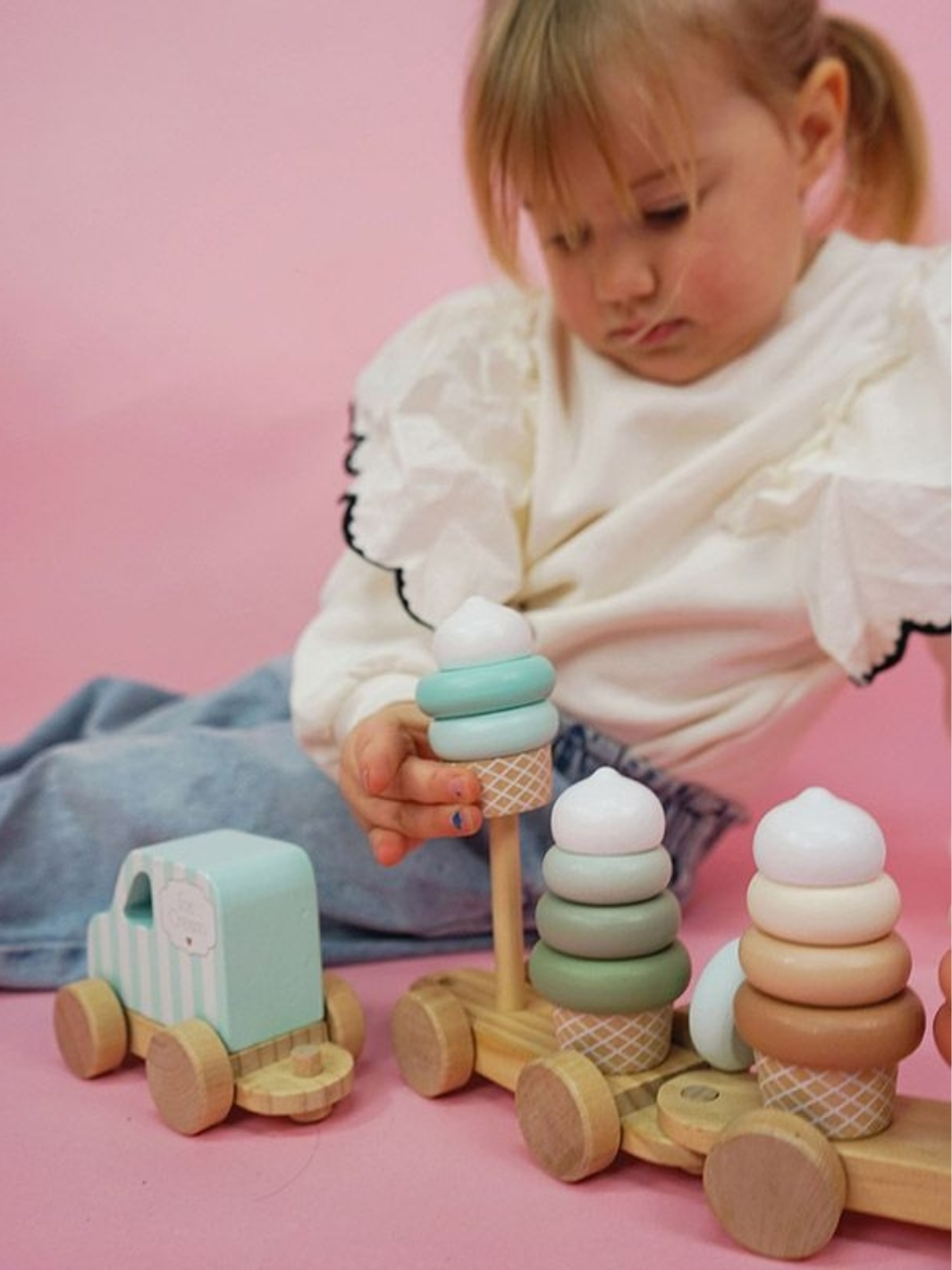 Mit diesem dekorativen Nachziehspielzeug in Form eines Eiscremezuges von Jabadabado serviert Ihr Kind seinen Freunden die besten Eissorten. Beim Stapeln und Zusammensetzen werden motorische Fähigkeiten und kreative Rollenspiele gefördert. Perfekt geeignet für kleine Hände. Gefertigt aus Holz aus nachhaltiger Waldwirtschaft.