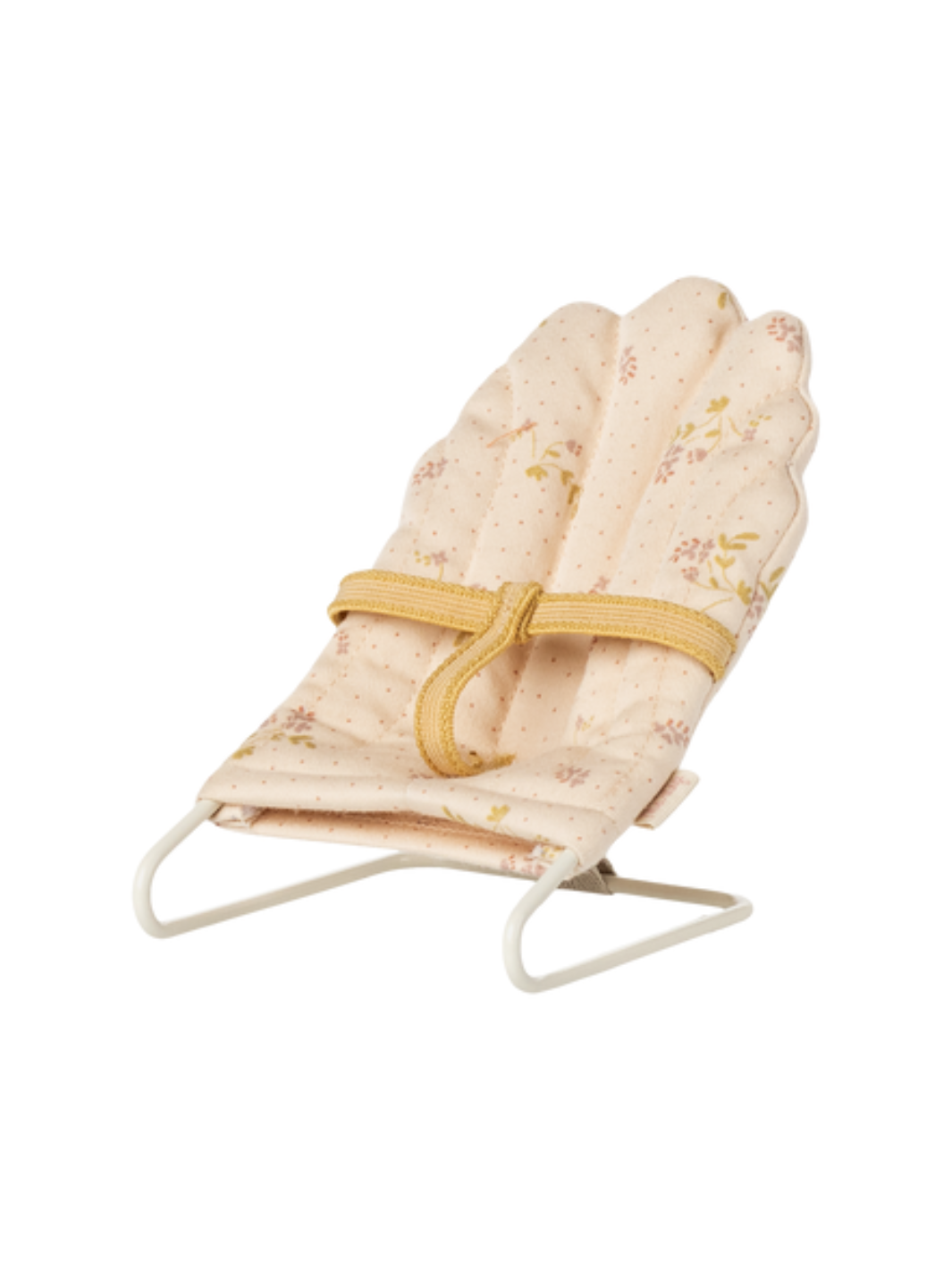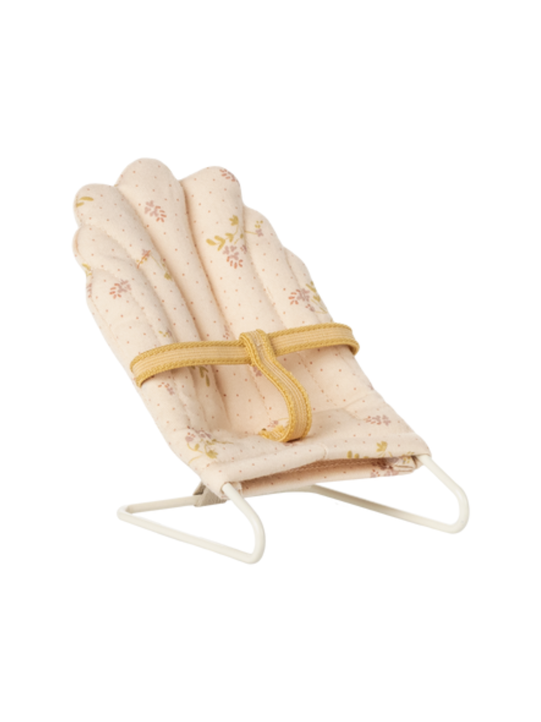 Mit diesem Babysitter von Maileg sind die Babymäuse immer sicher angeschnallt und können Mama Maus und dem Rest der Familie fasziniert zuschauen oder auch beruhigt ein Nickerchen machen. Ein echter Alltagshelfer, der in keinem Mäusehaushalt fehlen darf! Der Sockel ist aus Metall gefertigt und mit dem nostalgischen Maileg-Stoff überzogen. Die Babywippe passt perfekt zu den Mäusen und Kaninchen in Mikrogröße.