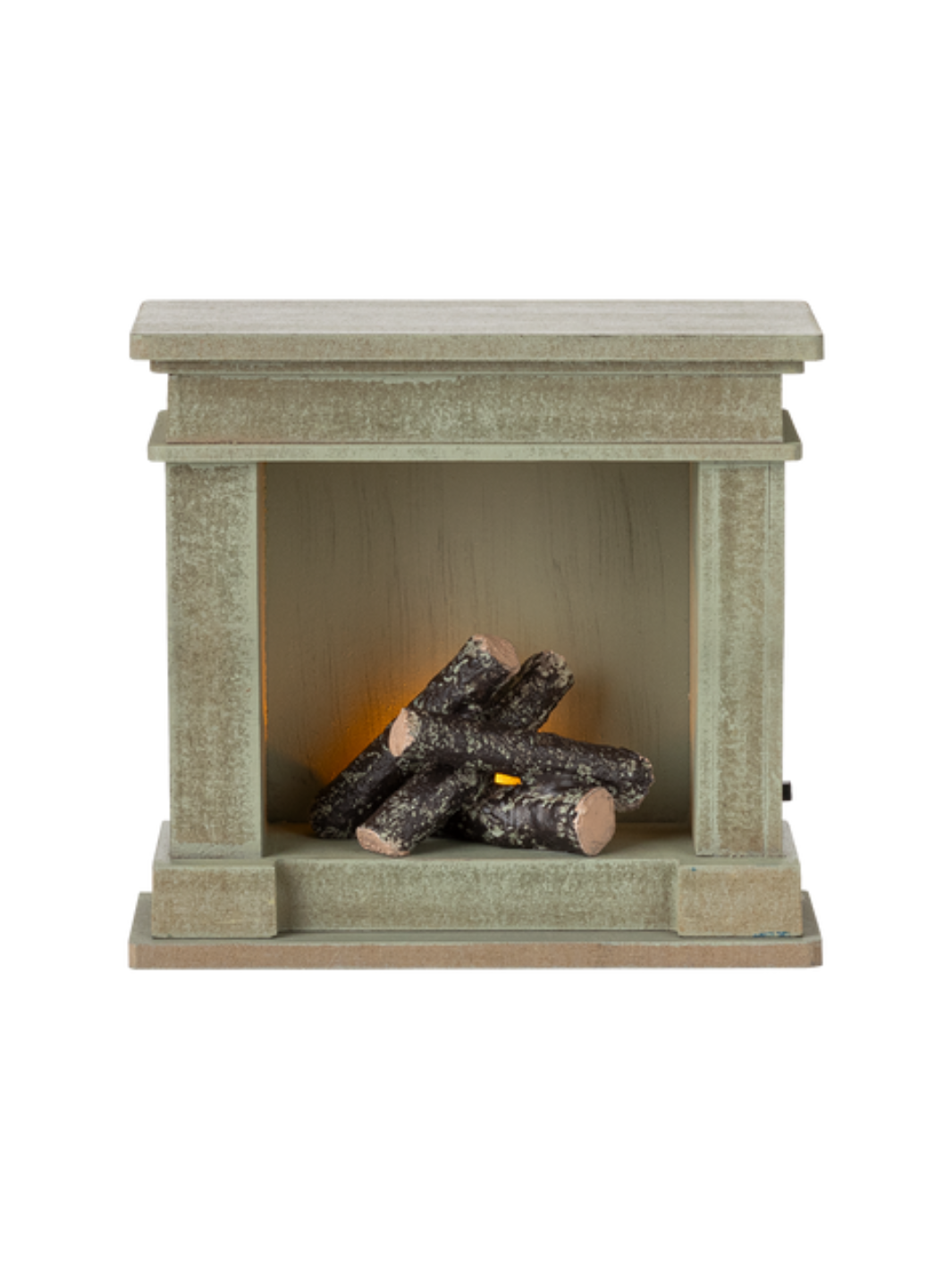 Dieser Holzkamin mit bezaubernder Vintage-Lackierung ist ein süßer Hingucker für das Maileg-Miniaturhaus. Für ein noch authentischeres Spiel kann mit einem Schalter die batteriebetriebene Beleuchtung im Kamin eingeschaltet werden.