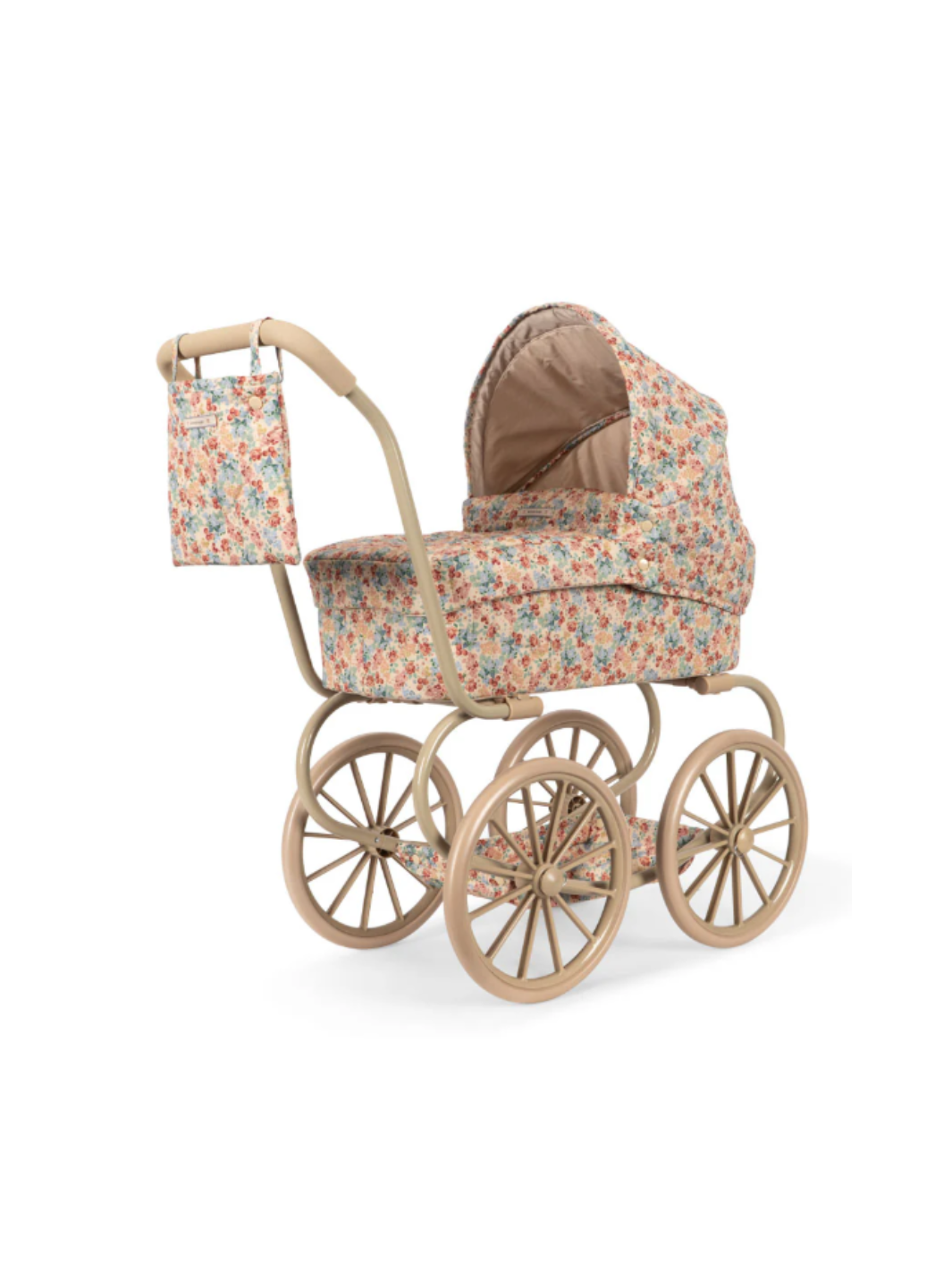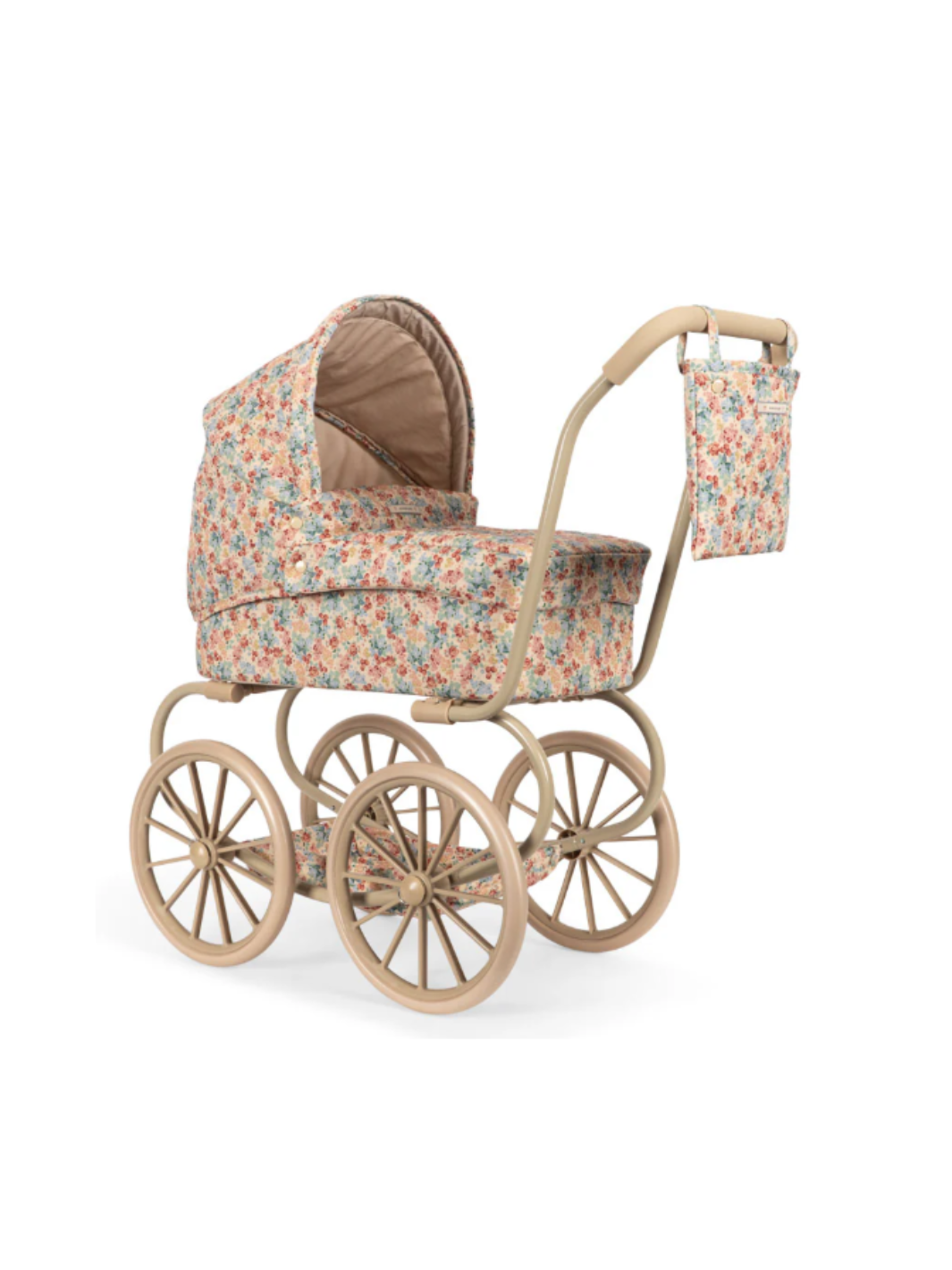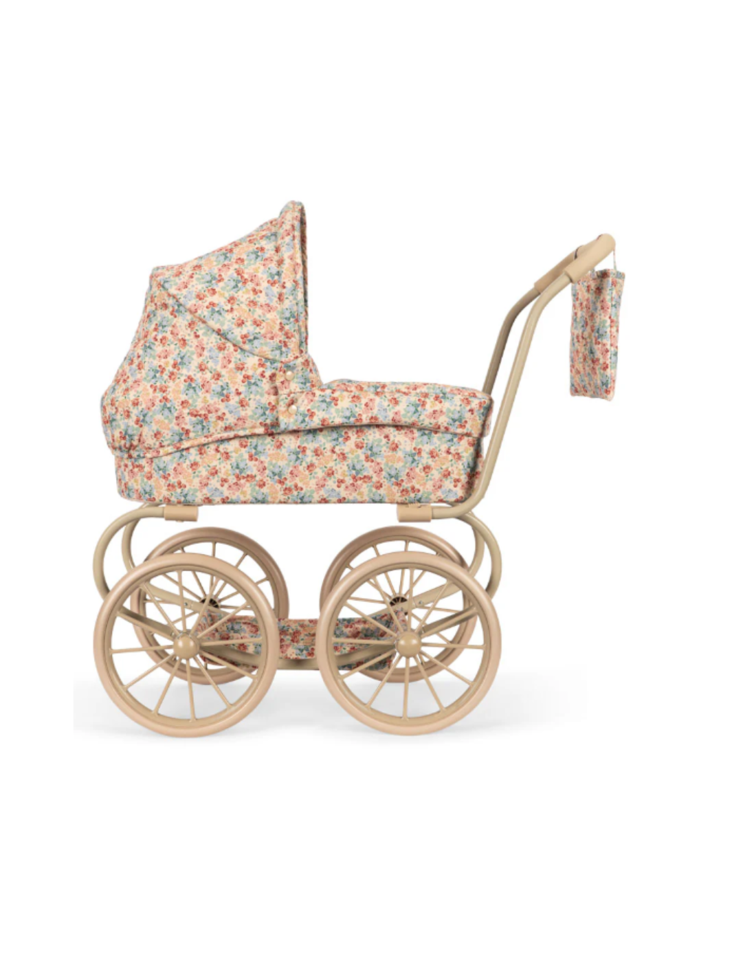 Der Puppenwagen Minnie im Vintage-Stil ist ideal für kleine Puppeneltern. Er ist mit vier großen Rädern ausgestattet, die ihn leicht zu manövrieren und stabil machen. Der Puppenwagen inkludiert ein faltbares Sonnenverdeck und einen weichen Textil-Ausbewahrungskorb unter dem Wagen. Mit gestepptem Stoff und zarten Wellensäumen sieht der Puppenwagen aus wie aus dem Märchen. Das Gestell ist aus Metall mit weichen Schaumstoffgriffen. Der Puppenwagen wird komplett montiert geliefert und lässt sich leicht zusammenlegen und verstauen.