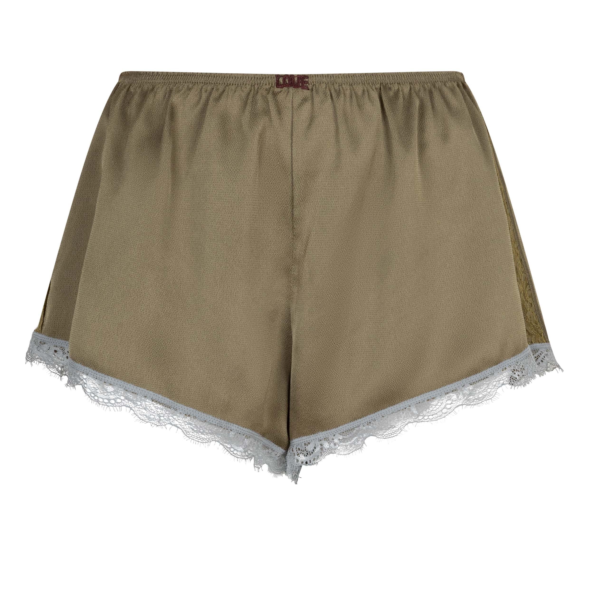 Die Apollo Shorts von Love Stories bestechen durch ihre mittelhohe Taille und den eleganten Grünton, der jedem Outfit eine frische Note verleiht. Aus hochwertigem Satin gefertigt, überzeugt das Modell mit einem dezenten Glanz, der ihm eine edle Ausstrahlung verleiht. Die weiche, leichte Qualität schmiegt sich angenehm an die Haut und sorgt für ein komfortables Tragegefühl. Der elastische Bund macht das An- und Ausziehen besonders einfach, während die lockere Passform und der hohe Beinausschnitt viel Bewegungsfreiheit bieten und für einen lässigen, dennoch femininen Look sorgen. Perfekt für entspannte Tage zu Hause oder als stilvolles Lounge-Piece.