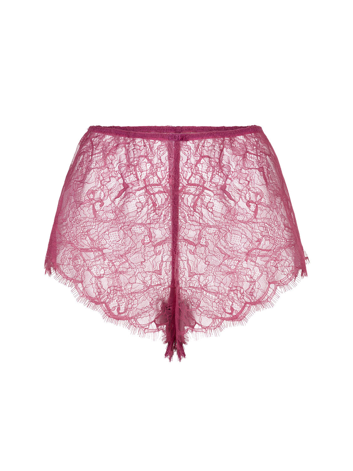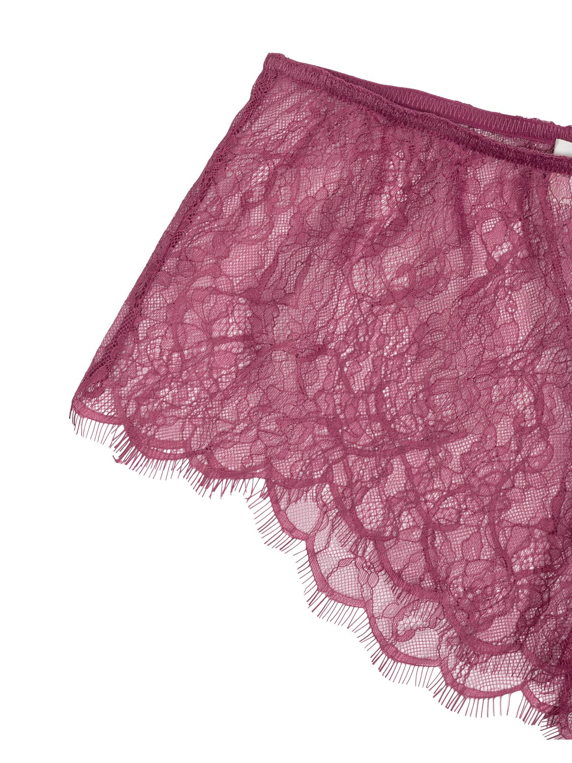 Die Brooke Shorts in einem zarten Lilaton bestechen durch ihre mittelhohe Taille und den elastischen Bund, der für einen komfortablen Sitz sorgt und das Anziehen spielend leicht macht. Die kastenförmige Passform kombiniert mit einem hohen Beinausschnitt schafft eine moderne, lässige Silhouette, die zugleich luftig und leicht auf der Haut liegt. Gefertigt aus transparentem, feinem Spitzenstoff, strahlen diese Shorts eine elegante und feminine Ästhetik aus, die jedem Look eine besondere Raffinesse verleiht. Ob als stilvolles Highlight im Alltag oder als sinnliches Detail für besondere Momente – die Brooke Shorts sind ein vielseitiges Must-have für jede Garderobe.