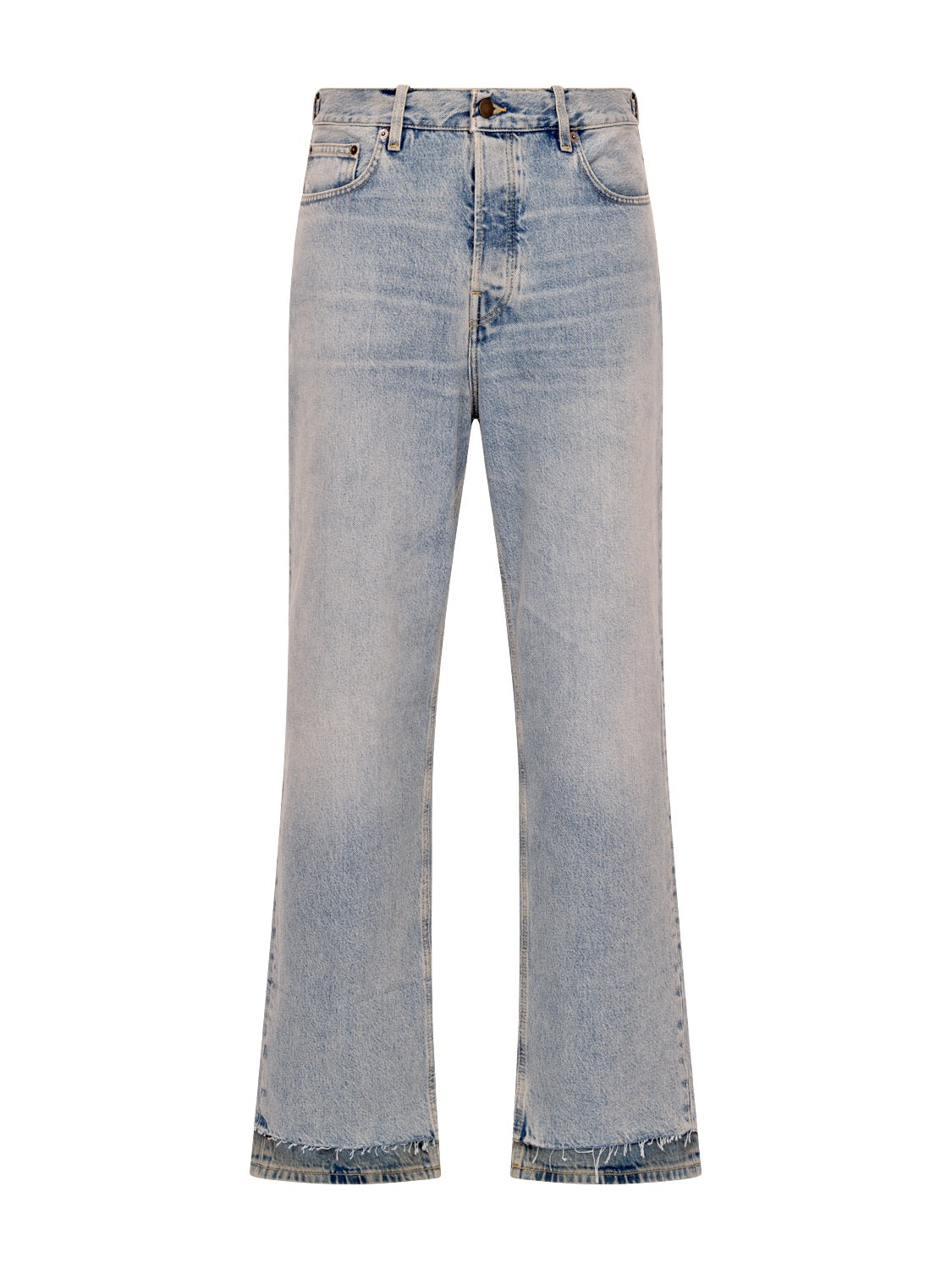 Diese Jeans aus leichtem Baumwoll-Denim überzeugt mit einem geraden Bein und klassischem Five-Pocket-Design. Der Bund ist mit Gürtelschlaufen ausgestattet, der Verschluss erfolgt vorn über Knopf und Reißverschluss. Ein besonderer Blickfang ist der kontrastierende Saum mit dezentem Used-Effekt, der dem Look eine moderne, lässige Note verleiht. Ideal für stilbewusste Alltagsoutfits mit einem Hauch Vintage-Flair.