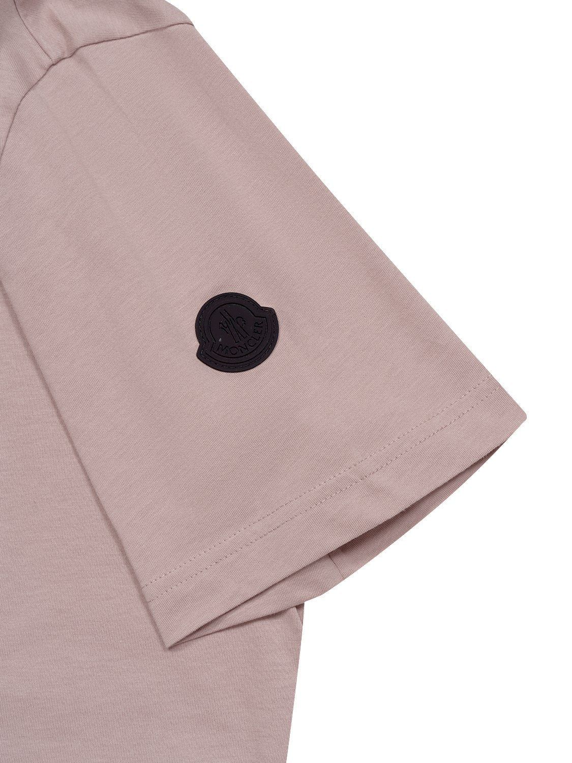 Dieses schlichte T-Shirt von Moncler in hellem Rosa besteht aus Bio-Baumwoll-Jersey und ist ein Klassiker. Ein Logo-Patch aus Silikon verziert den Ärmel, während auf dem Rücken ein dezentes Logo aufgedruckt ist.