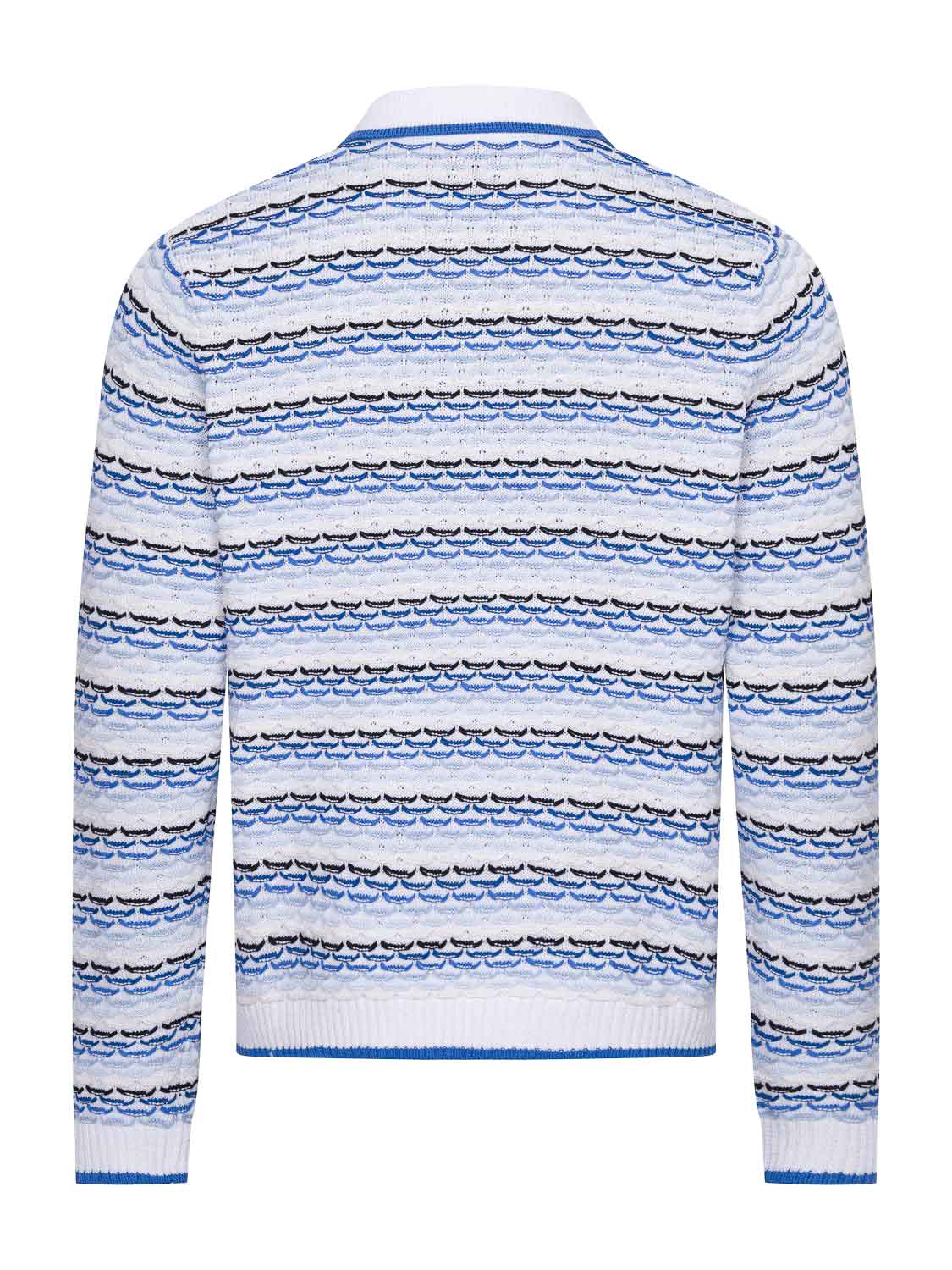 Das Tuck Stitch Langarm-Polo-Shirt von Casablanca ist ein fein gestricktes Modell, das mit dem ikonischen Diamant-Logo des Hauses verziert ist. Es verfügt über einen klassischen Knopfverschluss mit goldenen Perlenknöpfen und einem eleganten Randdetail. Der rippenbesetzte Kragen, die Ärmelbündchen und der Saum mit kantigen Akzenten verleihen dem Shirt eine stilvolle und präzise Verarbeitung. Ein luxuriöses Design, das raffinierte Details und edle Materialien miteinander vereint.