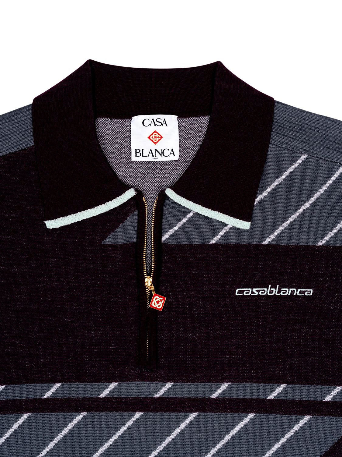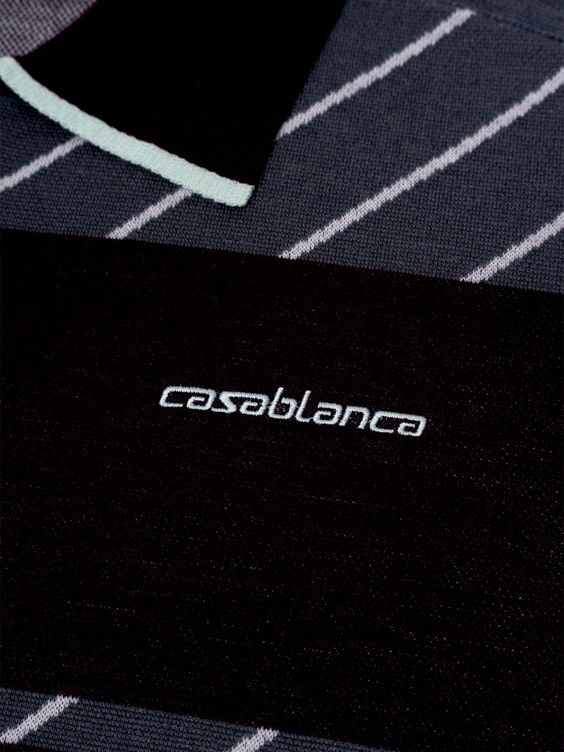 Das Merino Diagonal Tennis Polo überzeugt mit seinem kurzärmligen, gestrickten Design, das durch markante diagonale Sportstreifen und ein sorgfältig gesticktes Casablanca-Logo auf der Brust besticht. Für zusätzlichen Komfort und Stil sorgt der Viertel-Reißverschluss, dessen Zipper-Anhänger mit dem charakteristischen Diamant-Logo versehen ist. Abgerundet wird das Modell durch einen gerippten Kragen sowie kontrastierende Kanten an Kragen und Ärmelbündchen, die dem Polo eine besondere Detailtiefe verleihen und den sportlichen Look perfekt abrunden.