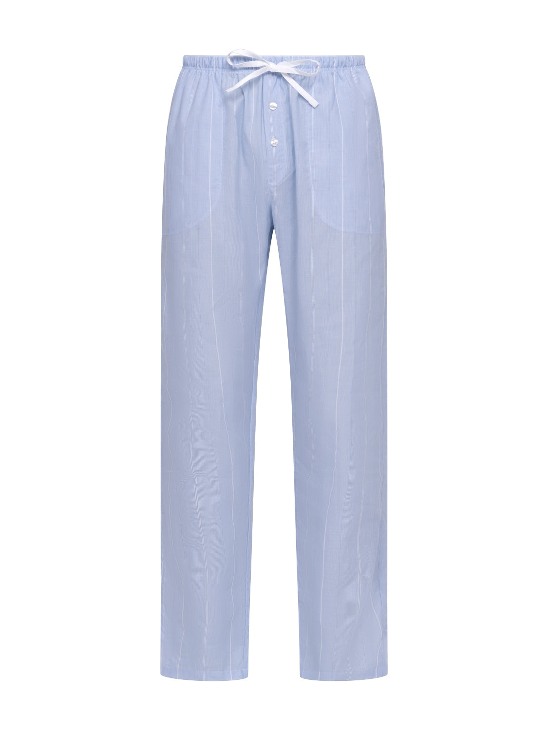 Diese gemütliche Schlafhose von Novila ist aus reiner als auch leichter Baumwolle, hier in einem satten Blauton. Sie verfügt über einen Gummizug in farblich abgestimmten Weiß-Ton. Vielseitig einsetzbar für gemütliche Stunden zu Hause.