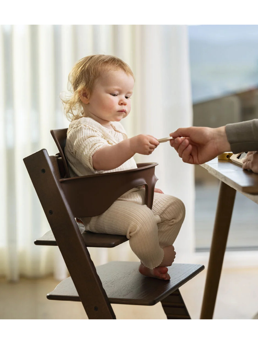Mit dem Tripp Trapp® Baby Set kann Ihr Baby von klein auf mit am Familientisch sein. Wenn Ihr Kind so weit ist, gibt das Baby Set ihm komfortablen Halt an den Seiten und im Rücken, ohne seine Bewegungsfreiheit einzuschränken. Sobald es eigenständig und sicher in den Stuhl hinein- und herausklettern kann, können Sie das Baby Set abnehmen. Das gibt ihm zusätzlichen Bewegungsfreiraum und größere Autonomie.