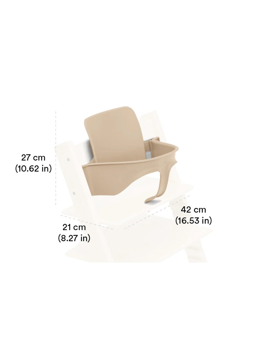 Die perfekte Ergänzung für den Stokke Tripp Trapp Hochstuhl ist das Baby-Set bestehend aus Rückenlehne, einem Bügel und praktischen Bodengleitern.  Mit etwa sechs bis neun Monaten beginnt ein Baby, alleine aufrecht zu sitzen. Das Baby-Set sorgt dafür, dass das Baby sicher und bequem am Tisch sitzen kann.
