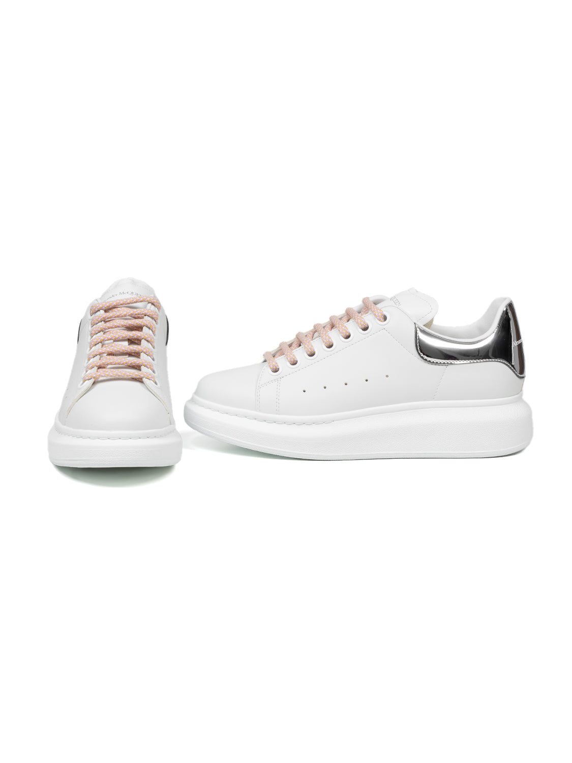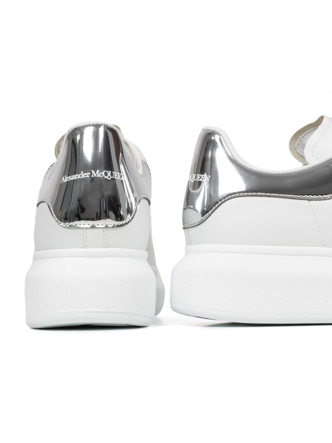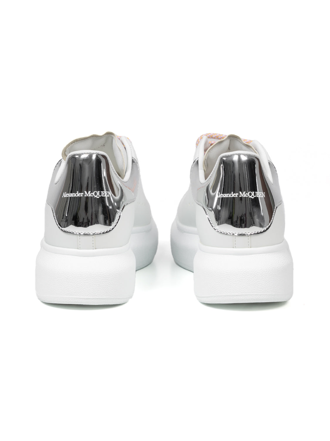 Die legendären Plateau-Sneakers von Alexander McQueen aus glattem Kalbsleder. Die Schuhe haben eine runde Zehenpartie, breite Schnürsenkel und ein Alexander McQueen-Logo auf der Zunge und der silberfarbenen Fersenkappe. Das Besondere an diesem Sneaker ist die kräftige Gummisohle mit einem integrierten Keilabsatz für mehr Höhe und Komfort.