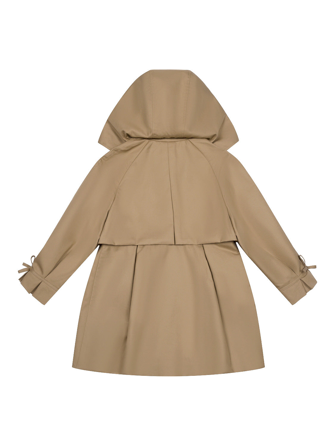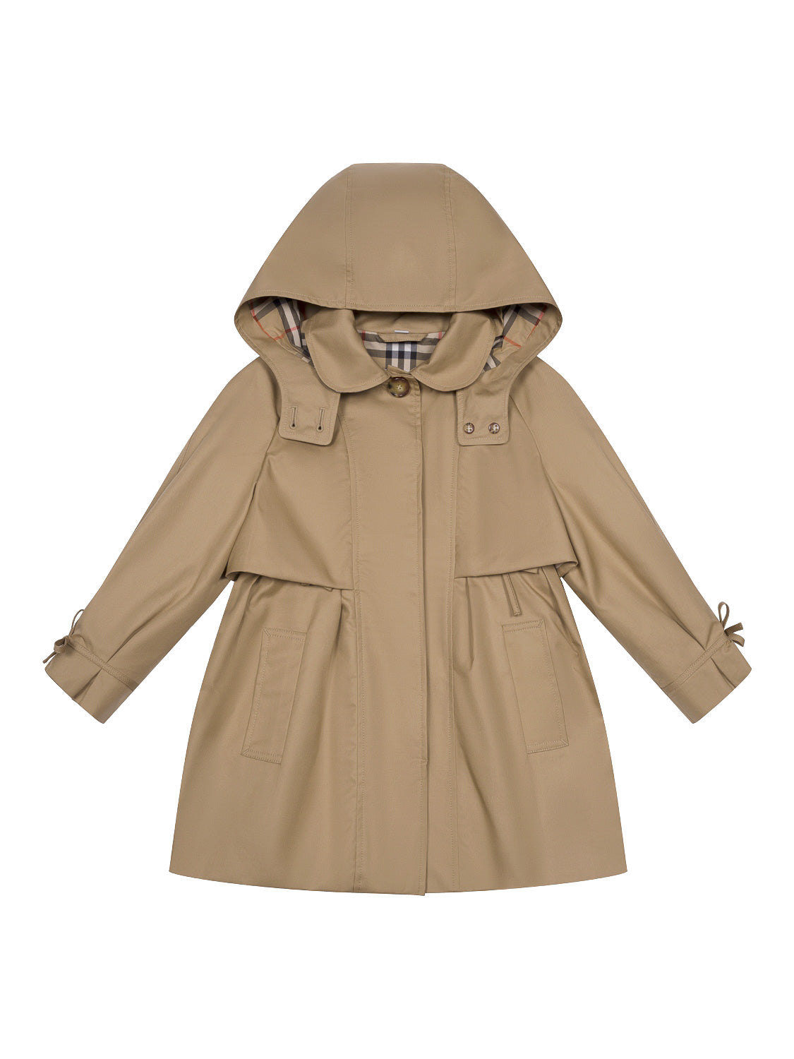 Der edle Trenchcoat Zoe in Sand für Mädchen von Burberry Kids besticht durch seine elegante Silhouette mit einem klassischen Peter Pan Kragen, einer verdeckten Knopfleiste sowie einer gefütterten Kapuze. Dezente Schleifen-Details an den Ärmelenden und im Brustbereich unterstreichen den verspielten Charakter und versprühen einen Hauch Raffinesse, während das ikonische Burberry-Karofutter dem modernen Design ein traditionelles Finish verleiht und ein harmonisches Gesamtbild erschafft.