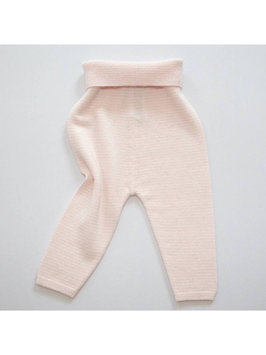 Die 2-fädige Babyhose BOBBY MINISTRIPE von Papa Lobster besteht aus reinem Kaschmir und verwöhnt die zarte Babyhaut mit einem besonders weichen Tragegefühl. Das feine Ministreifen-Design in Rosé und Weiß setzt verspielte Akzente, während die entspannte Passform und das breite, gerippte Bauchbündchen fürs Mitwachsen konzipiert sind. Das Bündchen kann nach Bedarf umgeschlagen oder in voller Länge getragen werden und umhüllt sanft und warm das Bäuchlein, ohne zu verrutschen oder einzuengen.