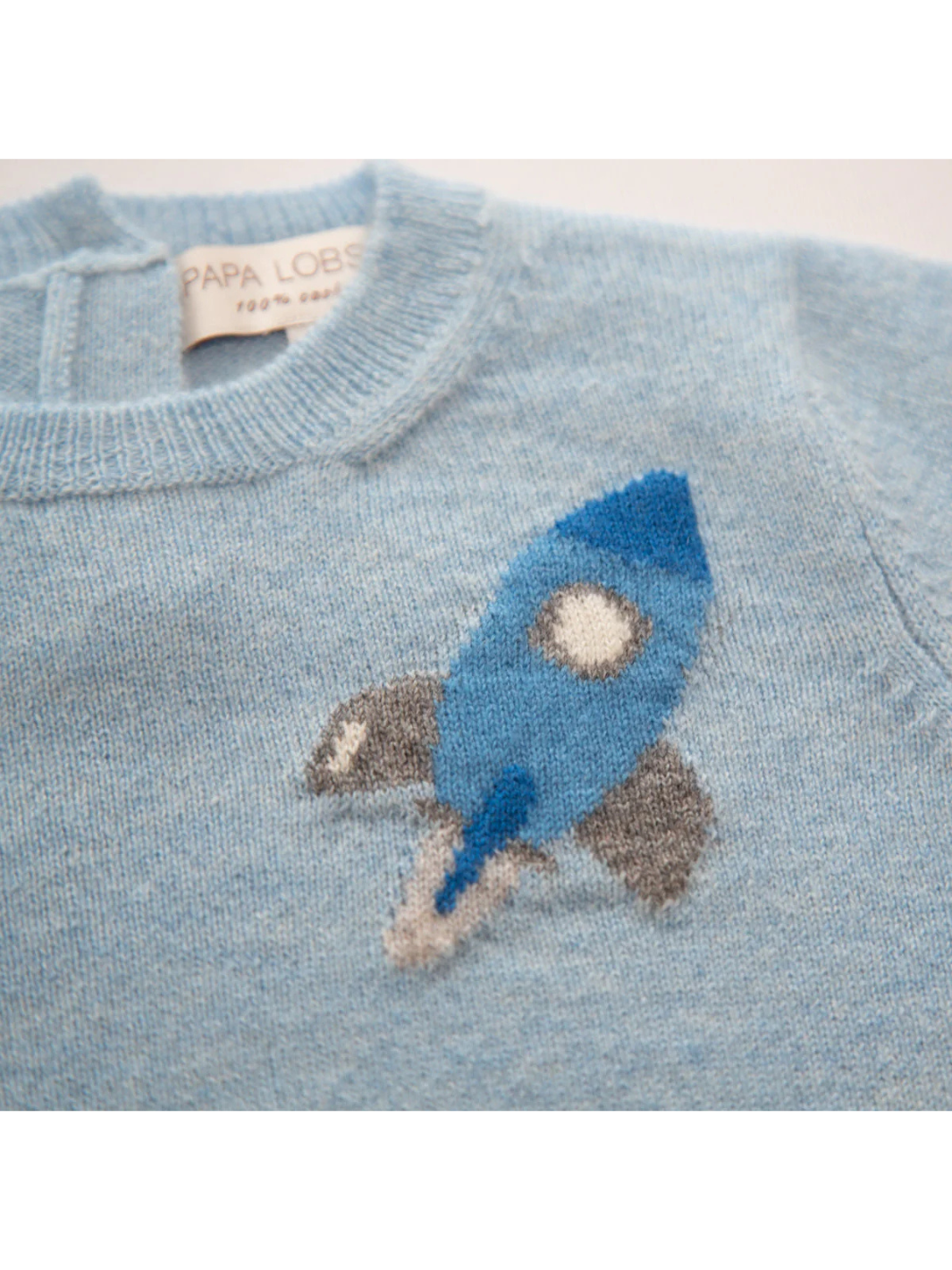 Der bezaubernde Strickpullover Rocket in Hellblau Mélange von Papa Lobster besteht aus reinem, herrlich weichen Kaschmir, hält wunderbar warm und bietet höchsten Tragekomfort. Von der raffinierten Raketen-Strickintarsie auf der Brust erhält das Modell einen verspielten, modernen Look.