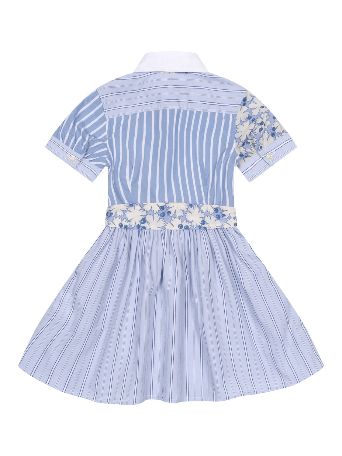 Mit diesem blauen Hemdblusenkleid präsentiert Ralph Lauren eine frische und herrlich verspielte Interpretation aus der aktuellen Mädchen-Kollektion und verkörpert gleichzeitig den unverwechselbaren Charme und die zeitlose Eleganz des Labels. Das Design beeindruckt mit einer raffinierten Kombination aus klassischen Streifenmustern und zarten Blumenmotiven.