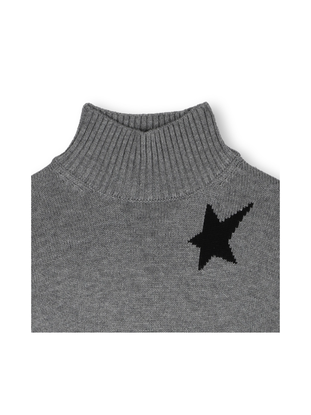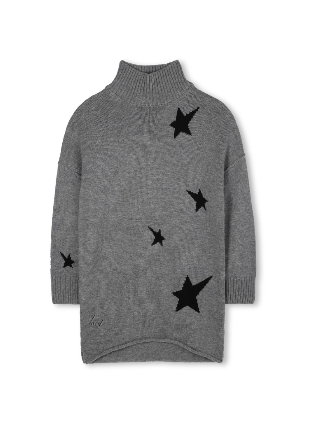 Stehkragenkleid mit Stern-Intarsie in Grau