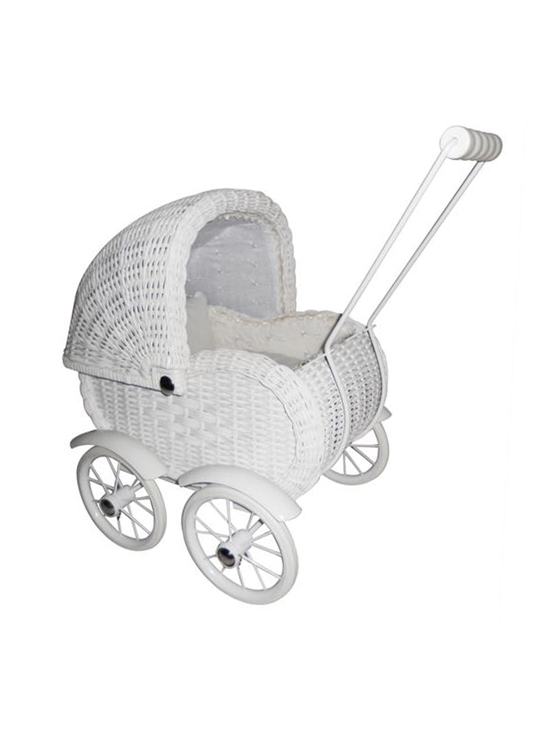 Niedlicher Puppenwagen aus Korbgeflecht im Retro-Design. Ein Kissen und eine Bettdecke sind im Lieferumfang enthalten. Der perfekte Begleiter für kleine Puppenmuttis und Puppenpapas.