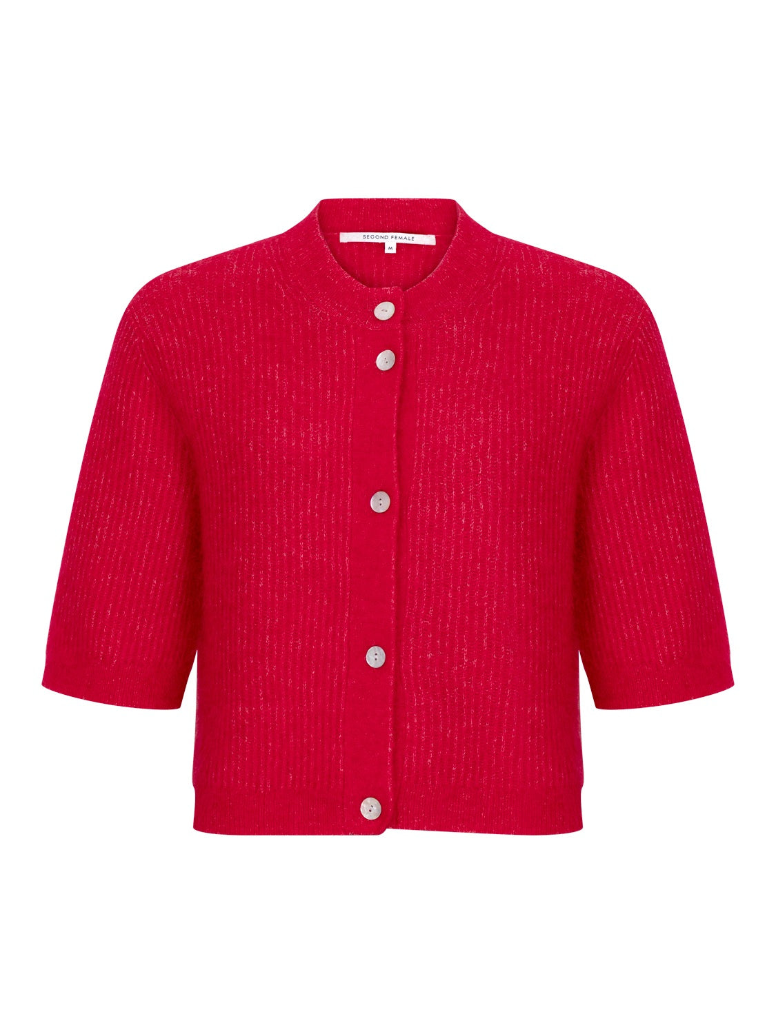 Diese gerippte Kurzarm-Strickjacke von Second Female verbindet komfortable Leichtigkeit mit einem modernen Schnitt. Gefertigt aus einer weichen Mohair-Wollmischung, besticht sie durch ihre strukturierte Oberfläche und ein angenehmes Tragegefühl. Der runde Ausschnitt und die durchgehende Knopfleiste mit schimmernden Perlmuttknöpfen verleihen dem Design einen eleganten Akzent. Mit überschnittenen Schultern und einer locker geschnittenen, leicht kastenförmigen Silhouette eignet sich das Modell perfekt für entspannte Alltags-Looks oder als stilvolle Ergänzung zu femininen Outfits.