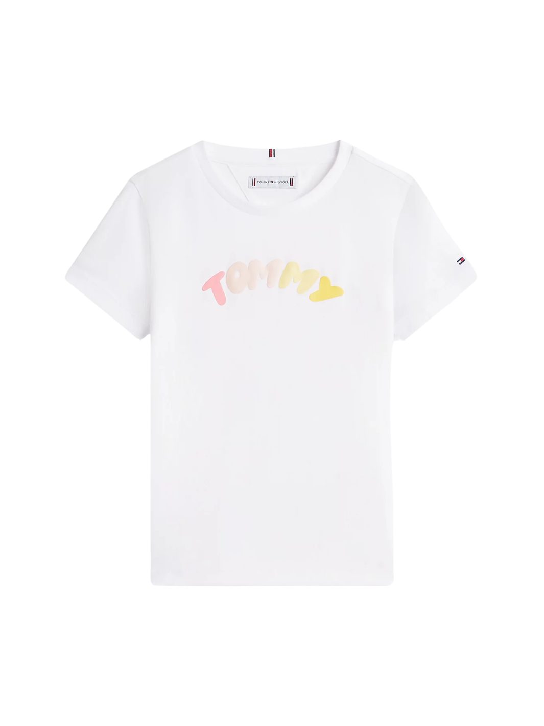 Eine verspielte Logo-Interpretation in Form eines hervorstehenden Prints schmückt die Vorderseite dieses Jersey-T-Shirts aus reiner Baumwolle von Tommy Hilfiger. Neben einem gerippten Rundhalsausschnitt verfügt das Regular-Fit Modell in Weiß über kurze Ärmel, ein Tommy-Tape im Nackenbereich sowie die ikonische Tommy Hilfiger Flag-Stickerei am Ärmel.