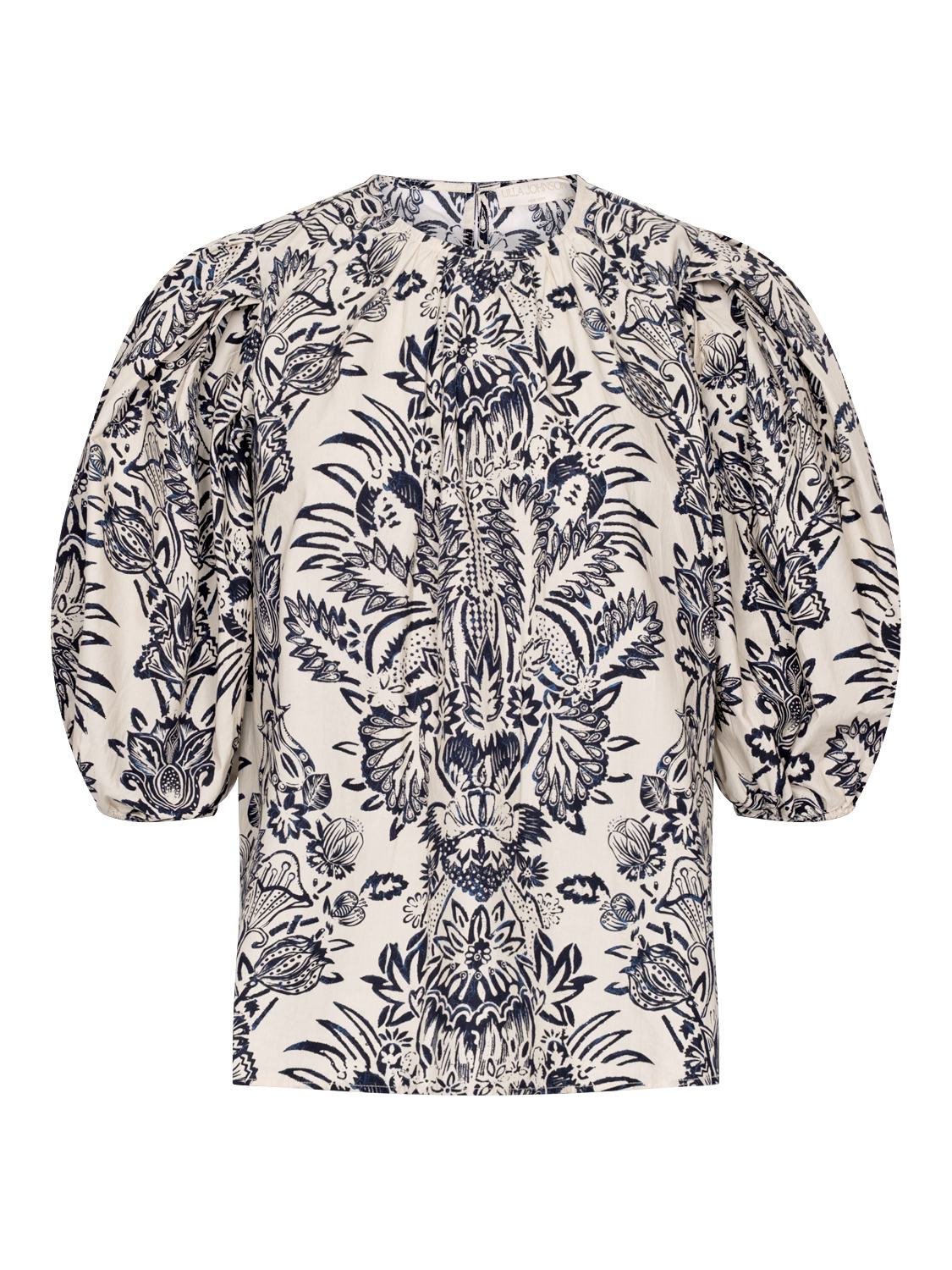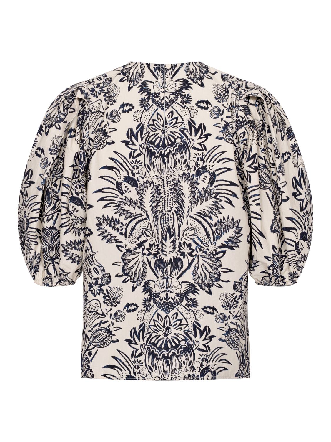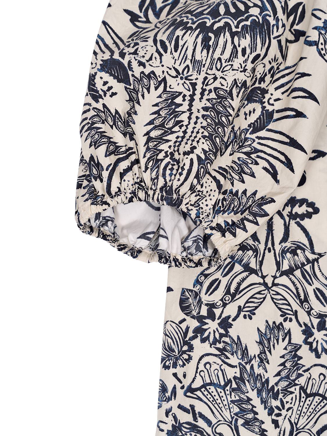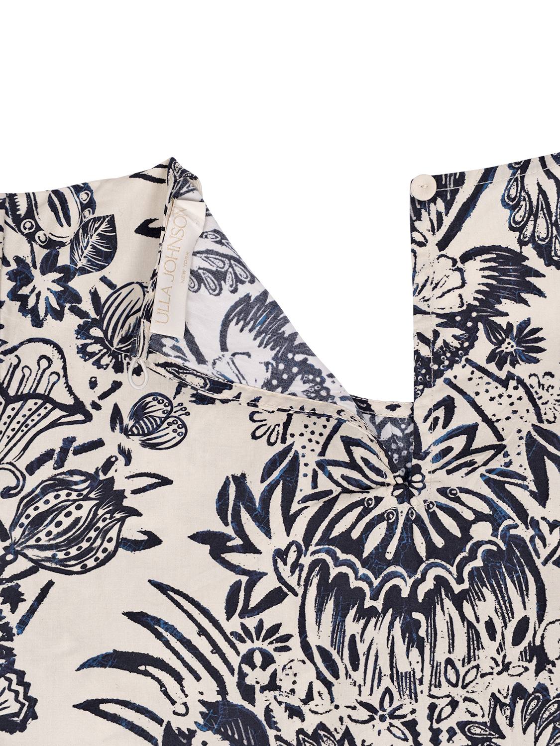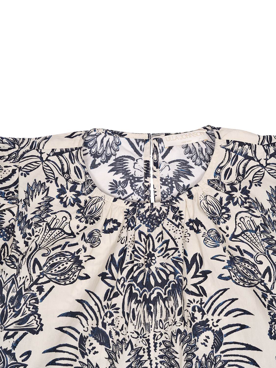 Das Frantiska Top von Ulla Johnson wird aus elfenbeinfarbenem Popeline gefertigt, das durch eine harmonische Kombination aus tiefen Farbtönen, symmetrischen Blumenmotiven und dezenten Batik-Texturen eine besondere Tiefe und Raffinesse erhält. Typisch für die ikonische Silhouette des Labels zeichnen voluminöse Puffärmel das Design aus und sorgen zusammen mit der lockeren, entspannten Passform für einen mühelosen, zugleich eleganten Look. Vielseitig kombinierbar, lässt sich das Top sowohl casual zu Jeans als auch stilvoll zu Rock oder Hose tragen und verleiht jedem Outfit eine subtile, feminine Note.