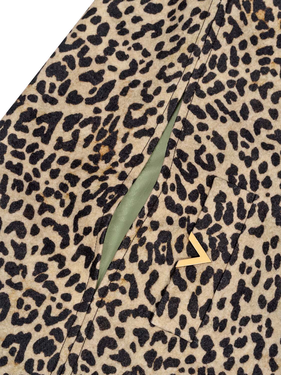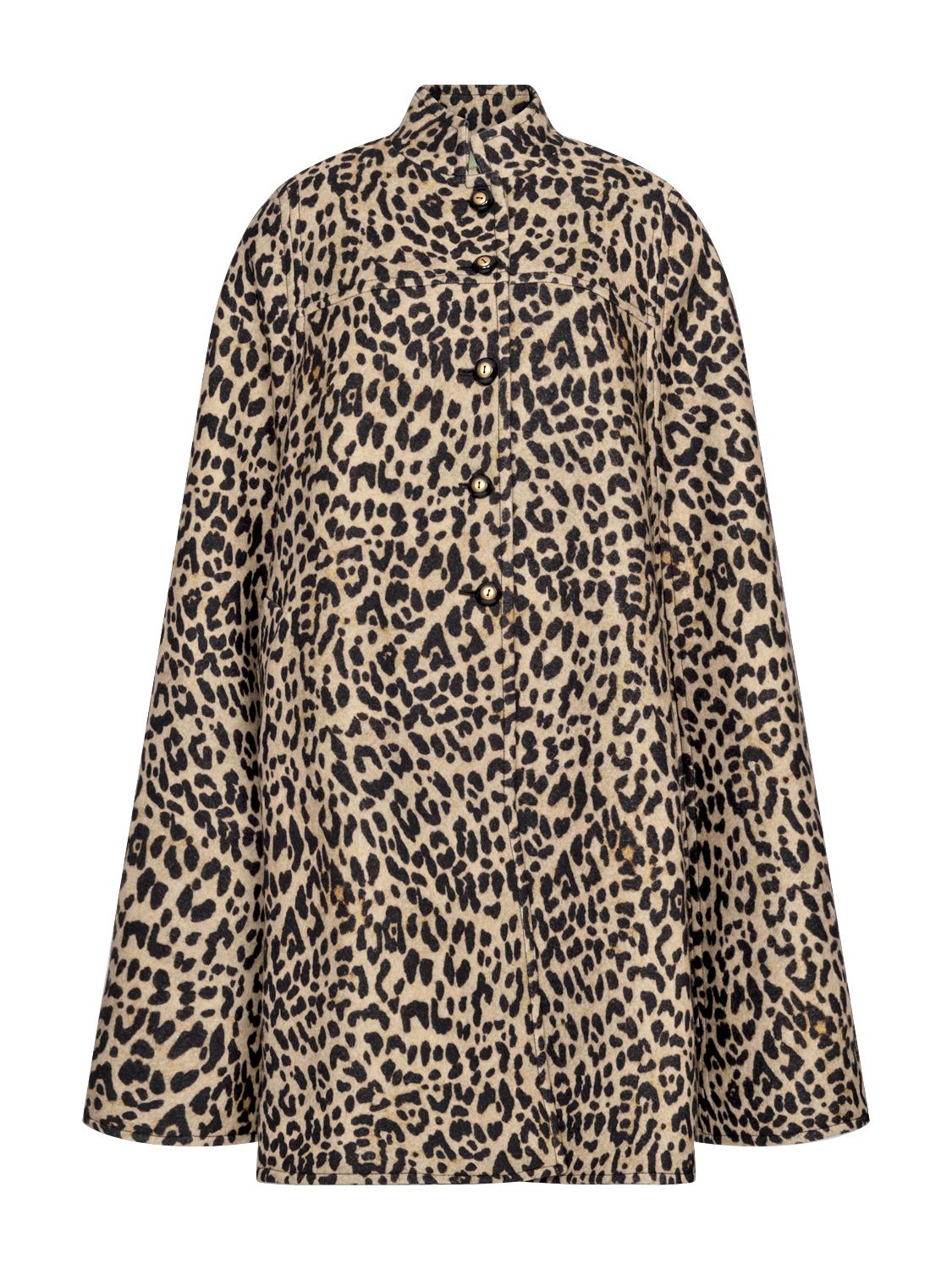 Dieses exklusive Cape besticht durch seinen raffinierten Fauve Éclat Animalier-Print und eine moderne, fließende Silhouette. Gefertigt aus einem hochwertigen Stoff mit leichtem Glanz, präsentiert sich das Modell mit einem eleganten Stehkragen und einer durchgehenden Knopfleiste auf der Vorderseite. Seitliche Schlitze sorgen für Bewegungsfreiheit und setzen die Arme dezent in Szene. Zwei seitliche Leistentaschen, verziert mit einem goldfarbenen „V Gold“-Metall-Detail, verleihen dem Cape eine luxuriöse Note. Die edle Jacquard-Innenseite aus Seidenmischung rundet das Design stilvoll ab. Mit seiner weiten, leicht ausgestellten Passform und der knieumspielenden Länge ist dieses Cape ein ausdrucksstarkes Keypiece für anspruchsvolle Looks.